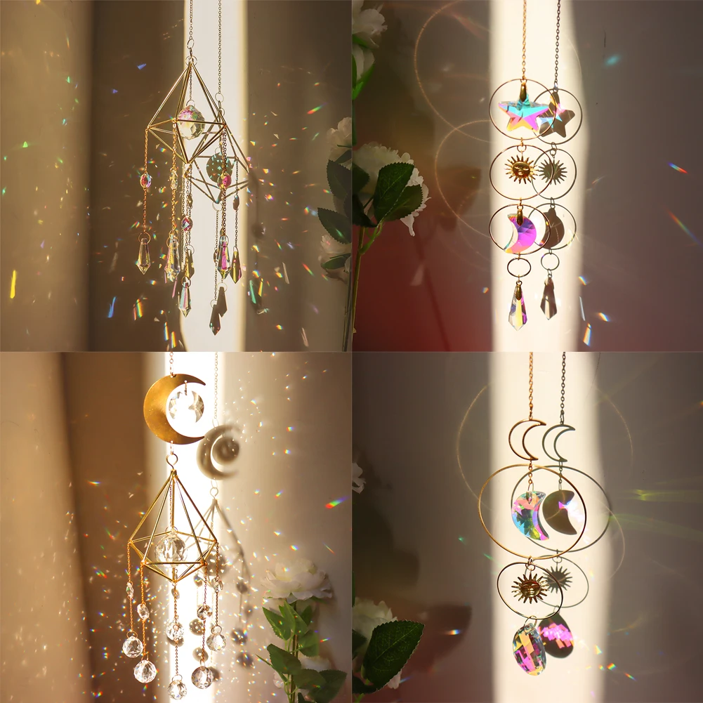 Хрустальные колокольчики ветра Луна Радуга солнце Сияющие кристаллы искусственное украшение солнце для захвата сада дома патио крыльца украшение