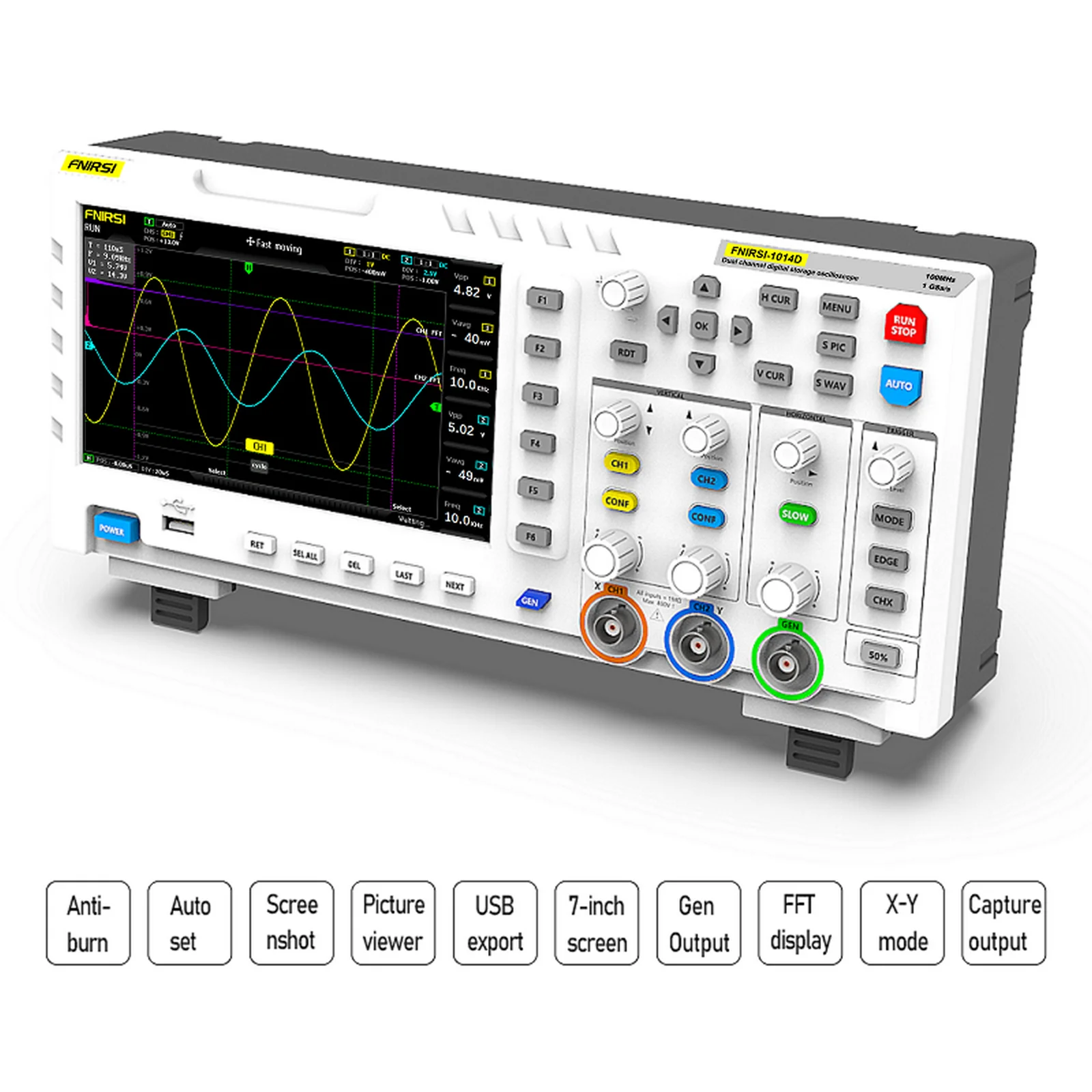 Набор цифровых осциллографов, 2 канала, FNIRSI-1014D входных сигналов, 100 МГц * 2, полоса пропускания журналов, 1 Гвыбс, частота дискретизации