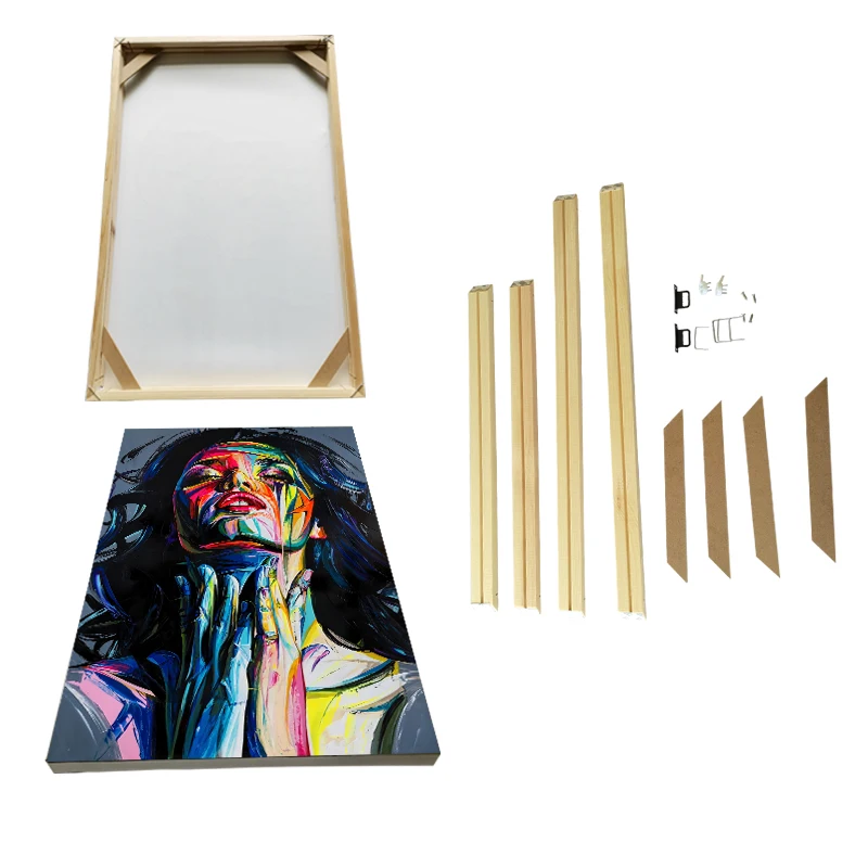 Убедитесь, что ваша картина с краями 3 см больше, я имею в виду, что размер холста должен быть больше, чем размер деревянной рамы 6 см, по крайней мереПримечание: Это только деревянная рамка без рисунка