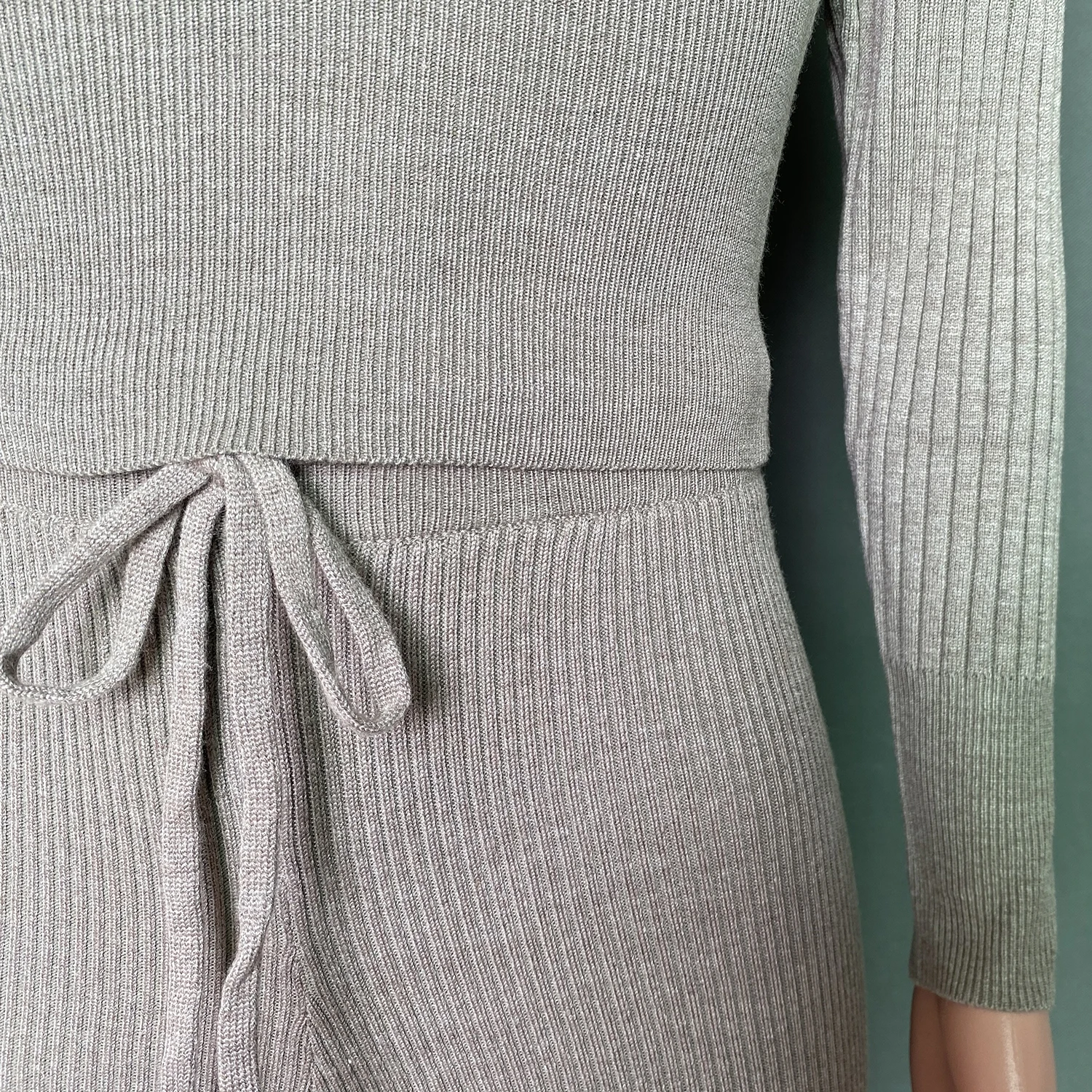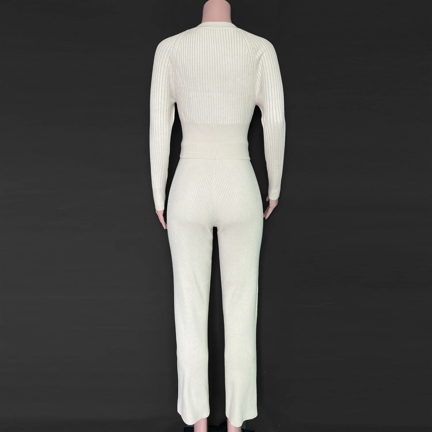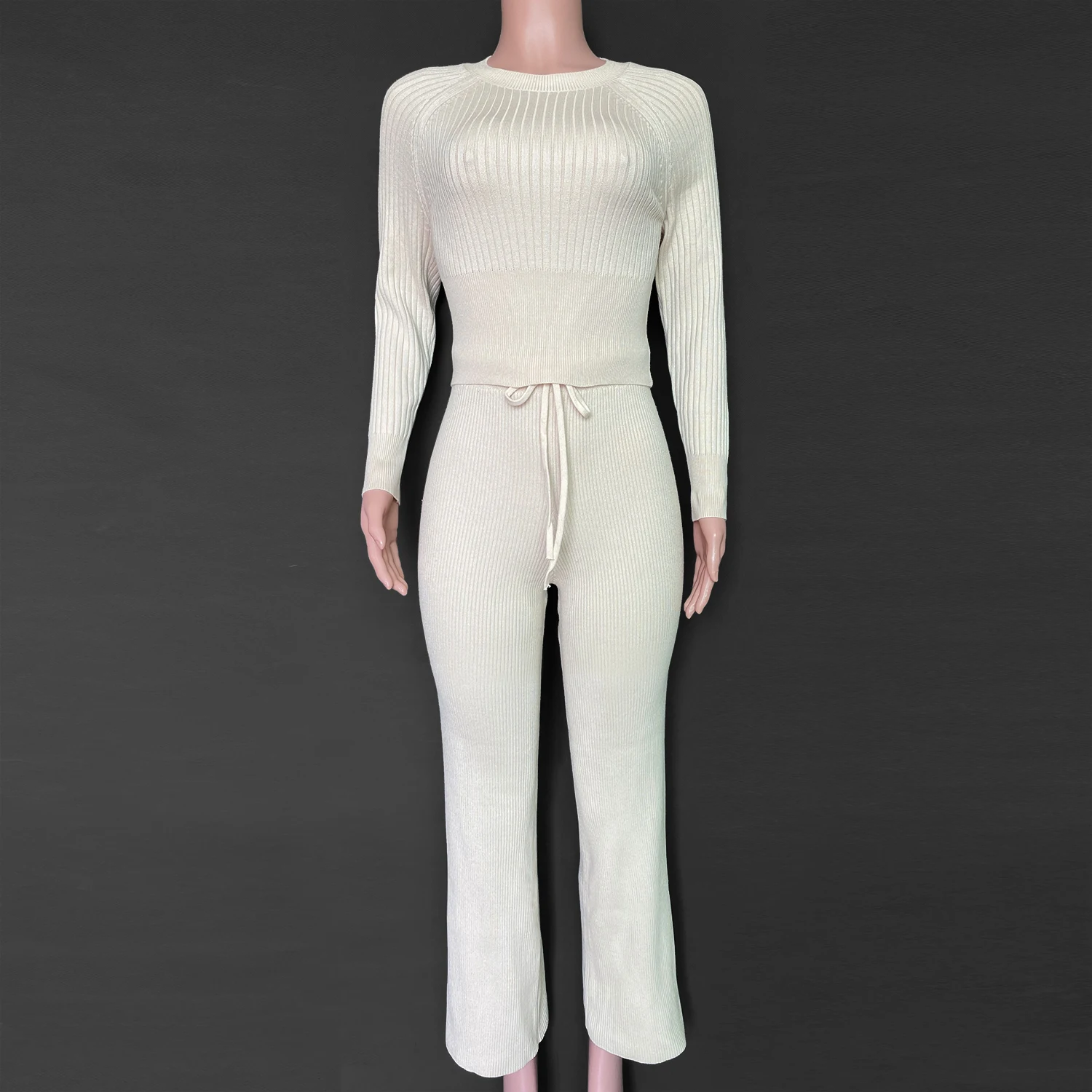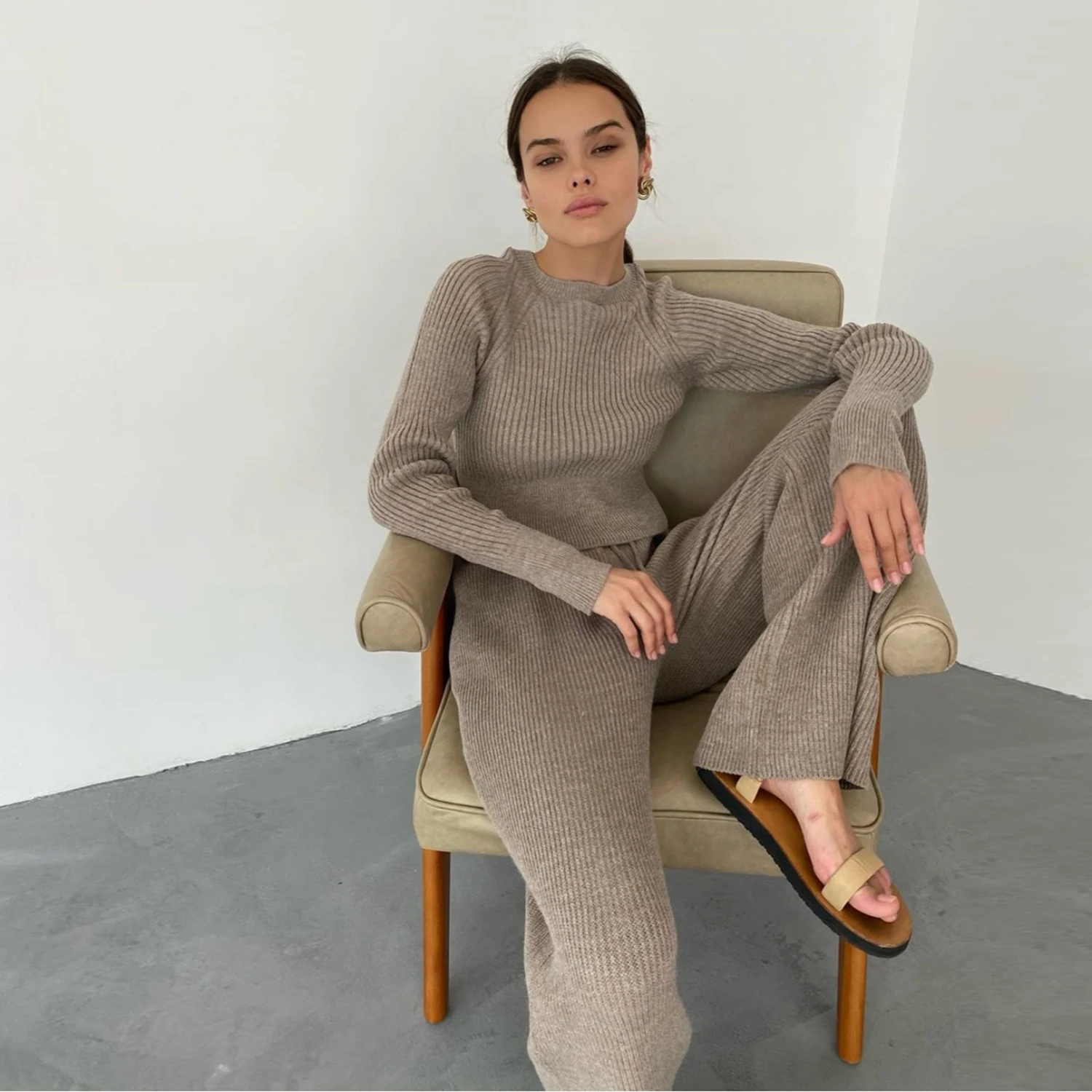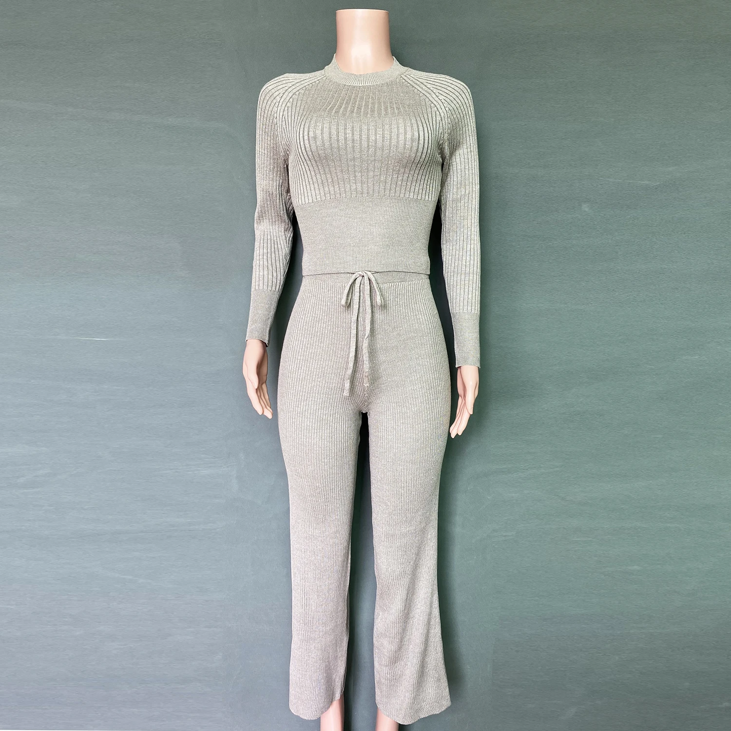 Новинка 2021, Модный зимний женский утепленный вязаный пуловер, свитер, костюмы из двух предметов, свободные широкие брюки с высокой талией
