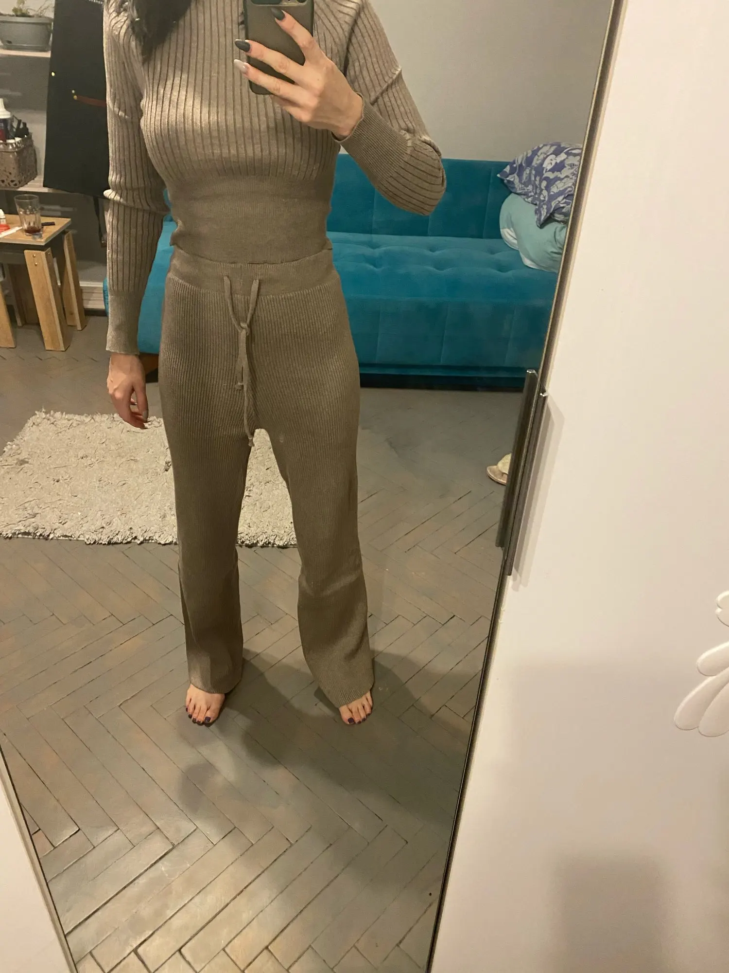 Отличный костюм за свои деньги, пришел до Спб за 2 недели. Размер S на рост до 160см, если вы выше будьте готовы, что штаны будут вам короткие, кофта короткая, но со штанами выглядит хорошо т.к. они с завышенной талией, я ношу размер xs/s s села как раз. Продавец отвечает и открепляет посылку быстро