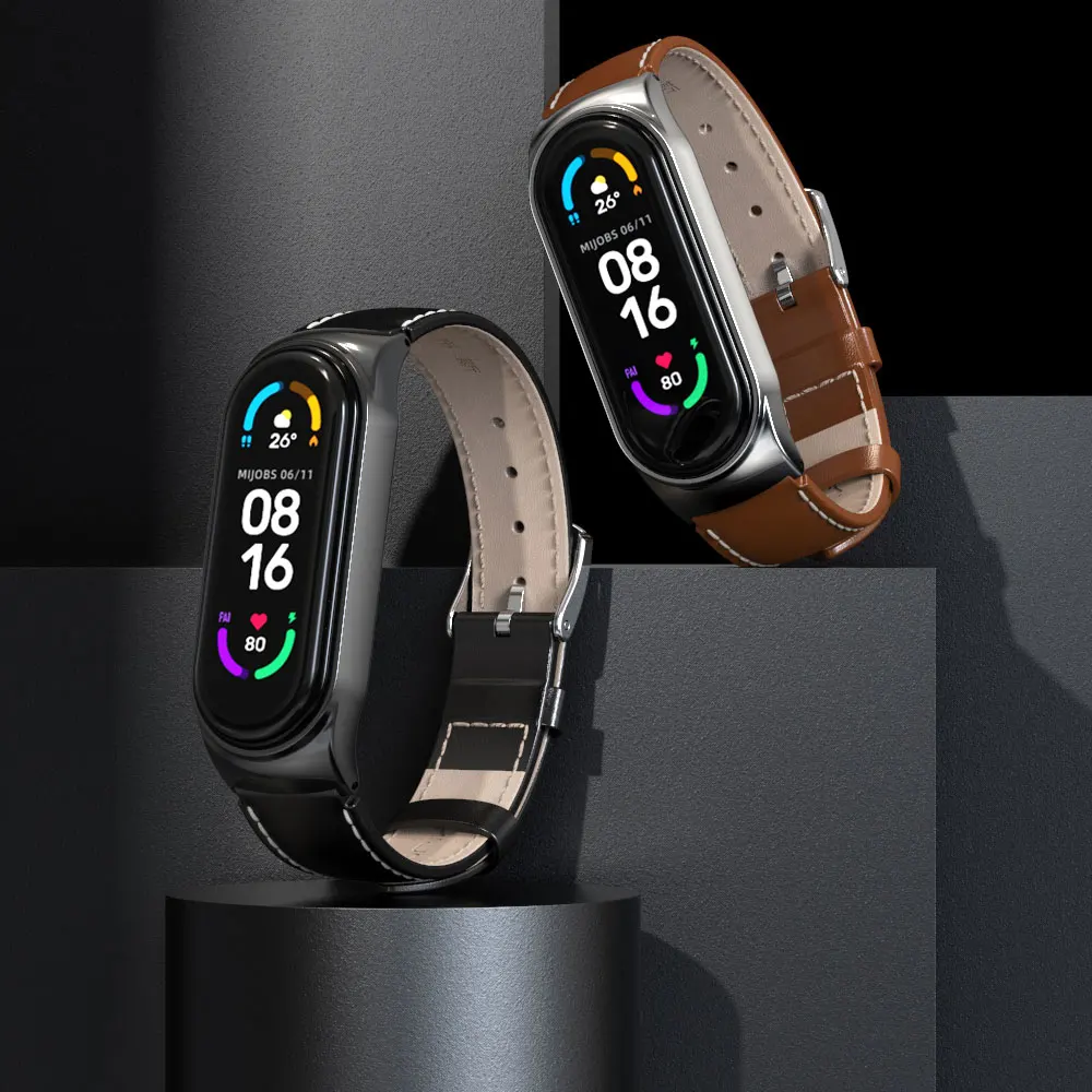 Металлический ремешок для Mi Band 5 6, кожаный браслет для Mi Band 5, Mi Band 4