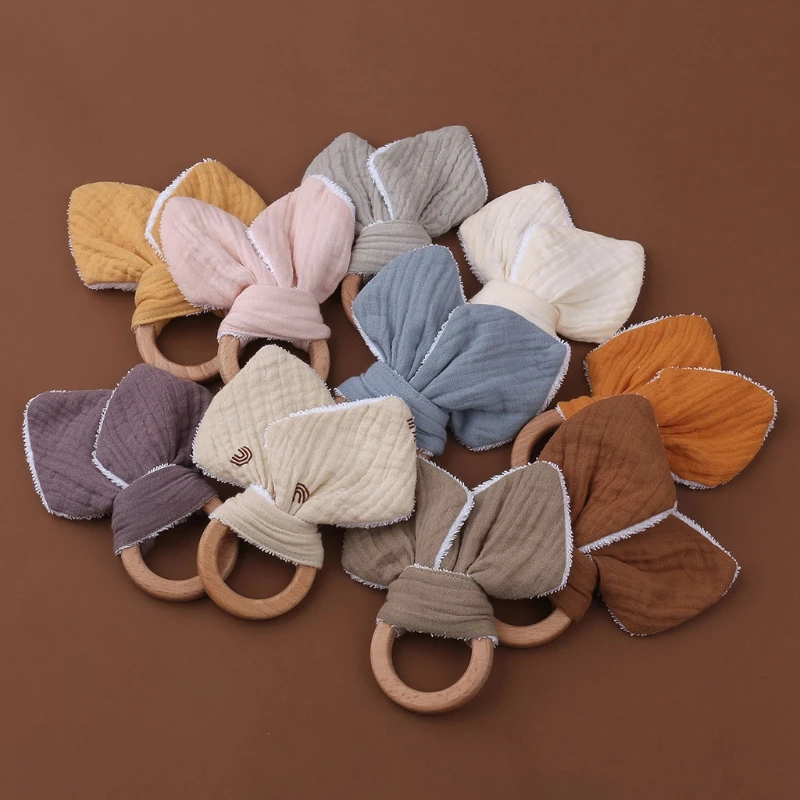 Детское деревянное кольцо-прорезыватель, Мягкое хлопковое ушко кролика, удобная игрушка для прорезывания зубов, сенсорная погремушка, подарок для новорожденных