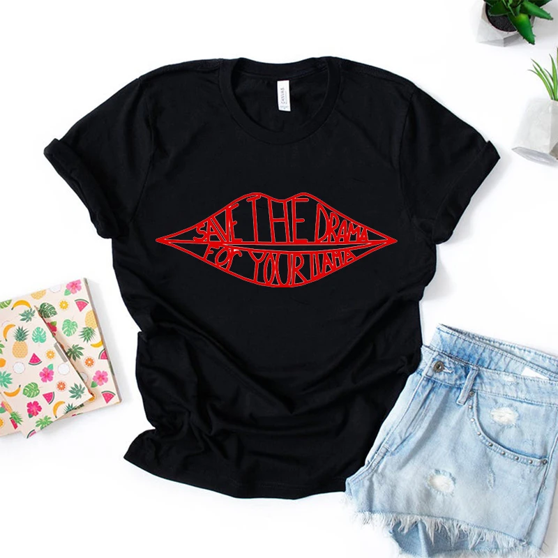 Забавная женская футболка с графическим принтом сохраните драму для вашей мамы, летние черные футболки с коротким рукавом, Женский Топ Goth Rock, одежда