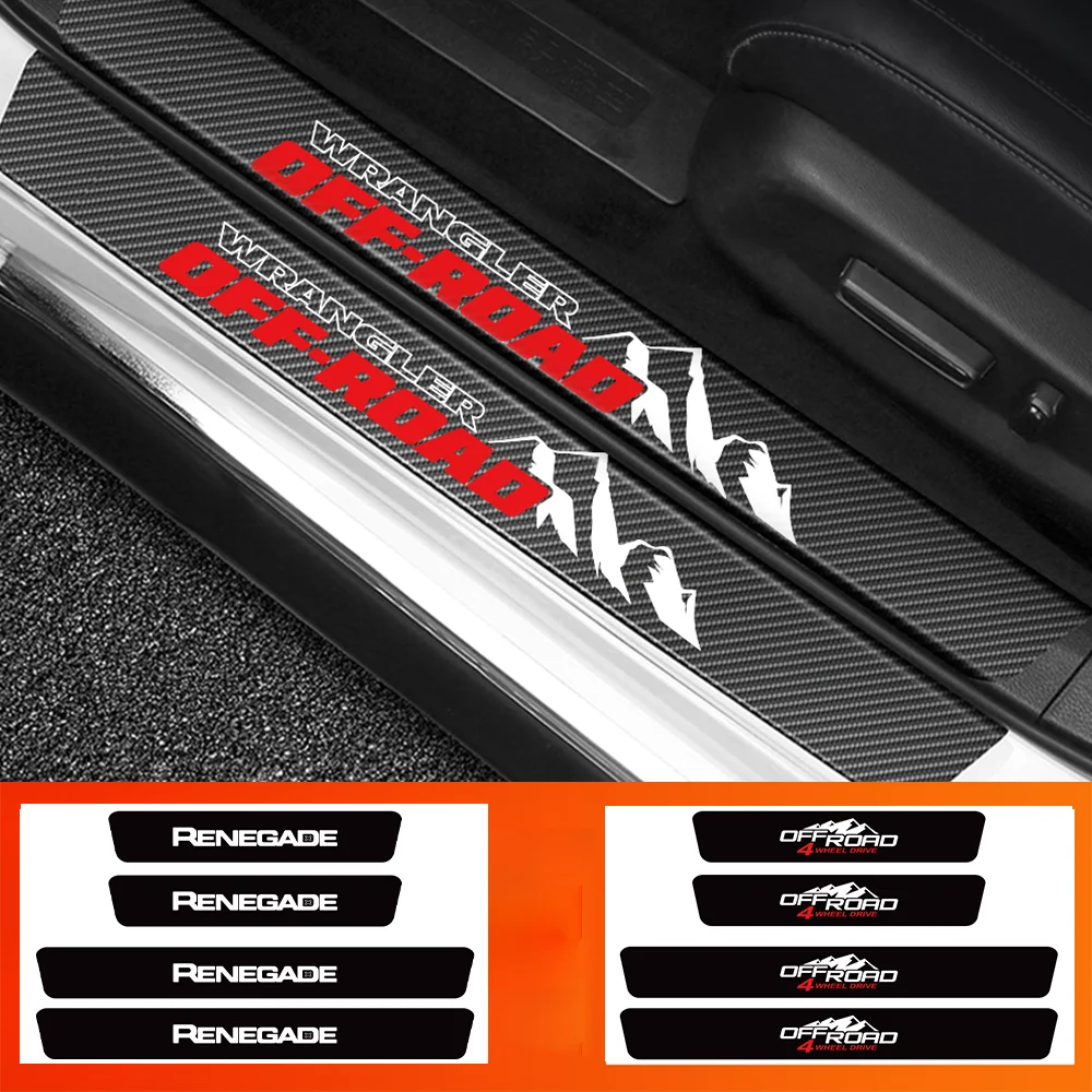 Защитные наклейки на порог автомобильной двери из углеродного волокна, автомобильные аксессуары для Jeep Renegade Wrangler Compass