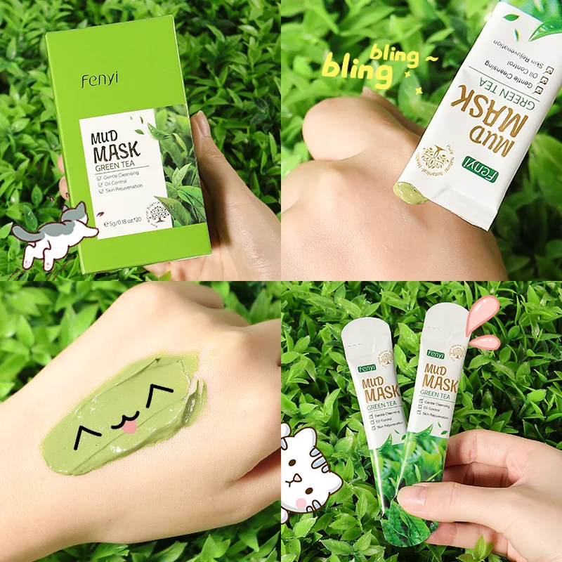 Маска из зеленого чая и грязи 5 шт., портативная дорожная маска для...