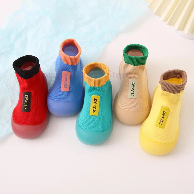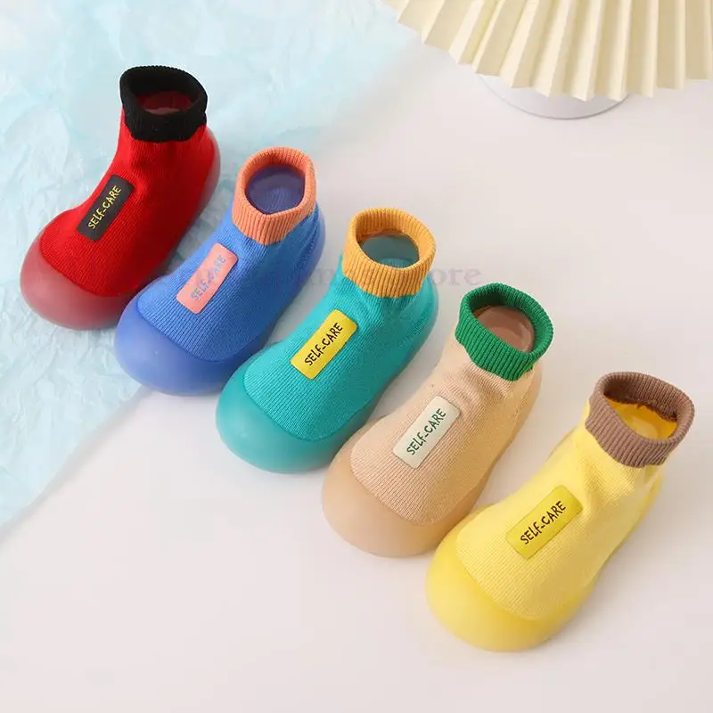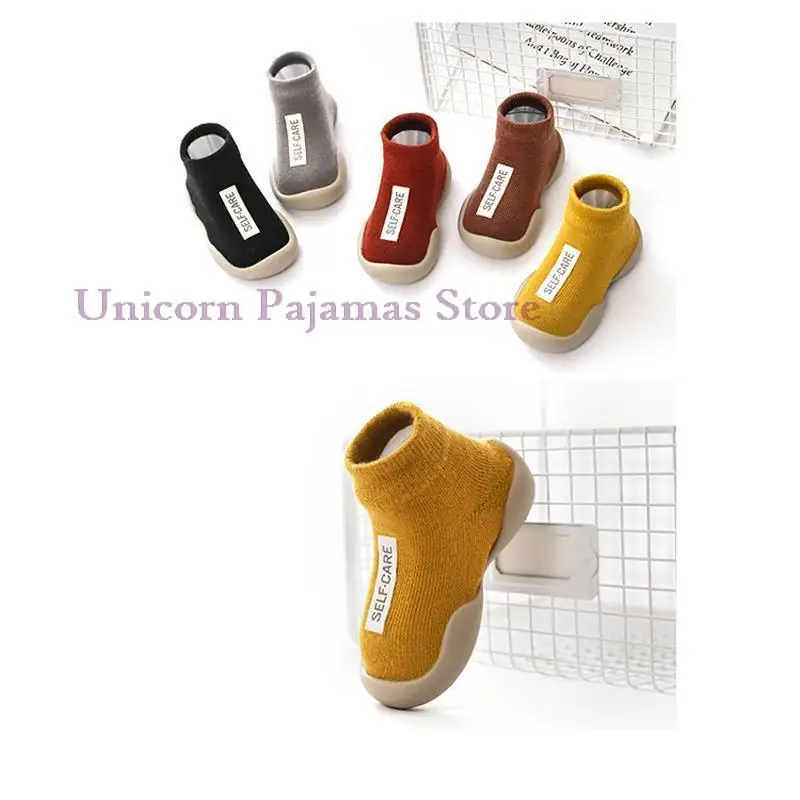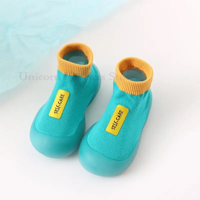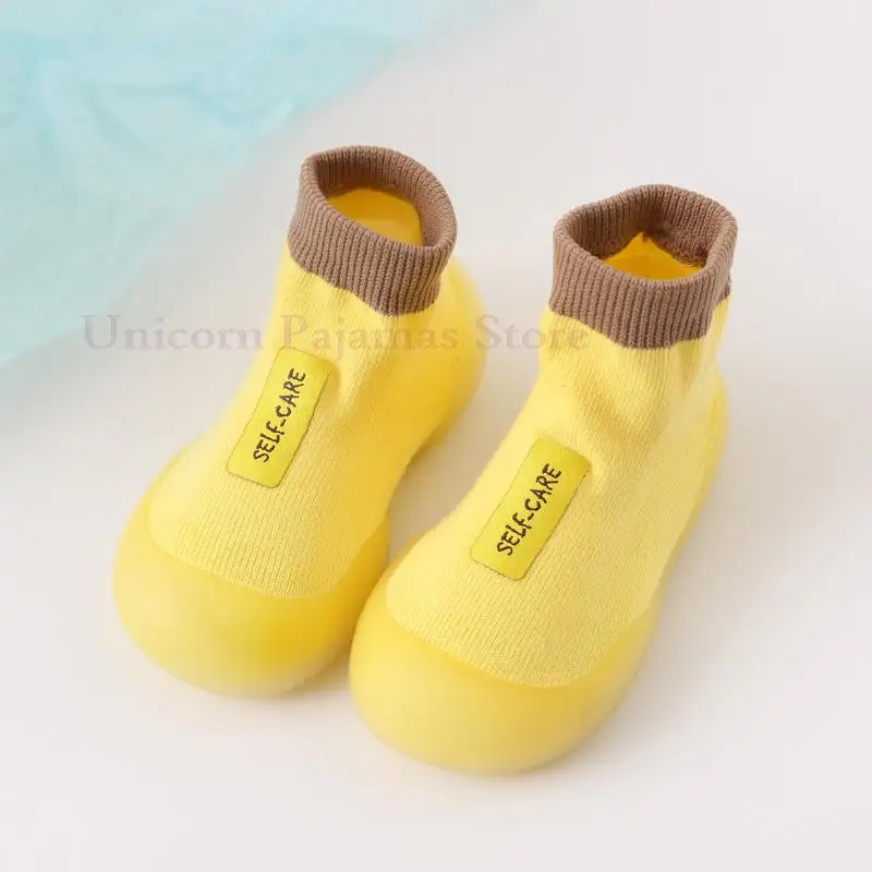 Детские желтые вязаные ботинки для новорожденных, уютная обувь для самостоятельного ухода, носки для малышей с мягкой подошвой для девочек и мальчиков, Нескользящие тапочки для младенцев