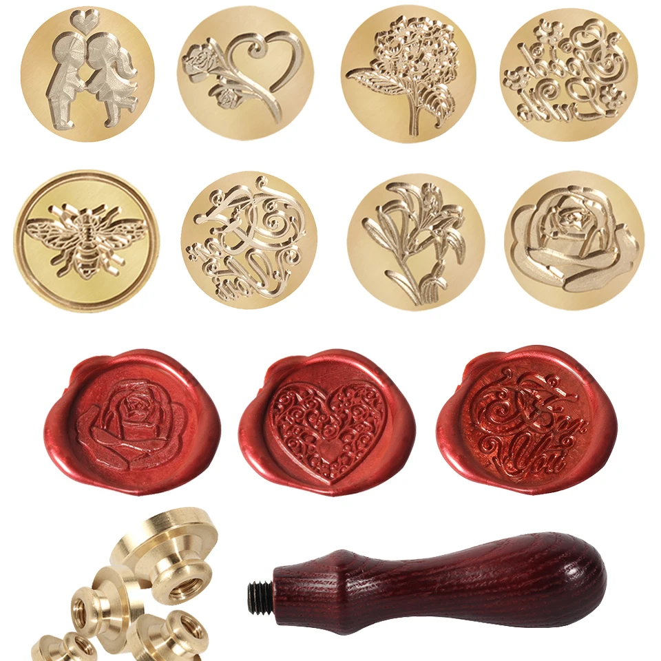 Набор штампов для восковых печатей, 6 шт., латунные головки, деревя...