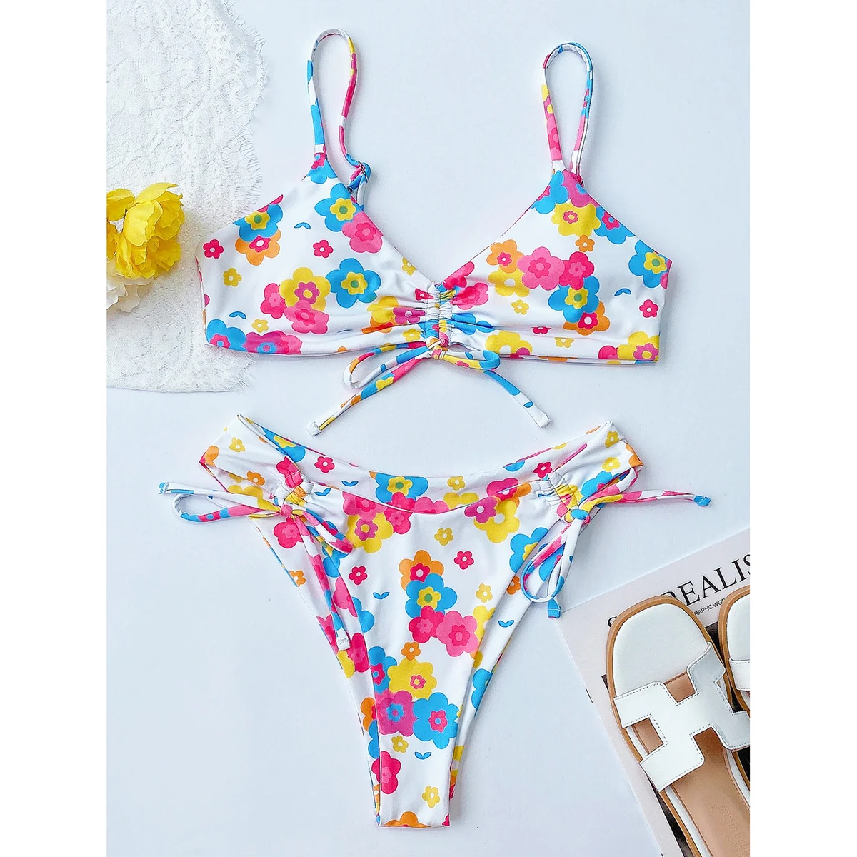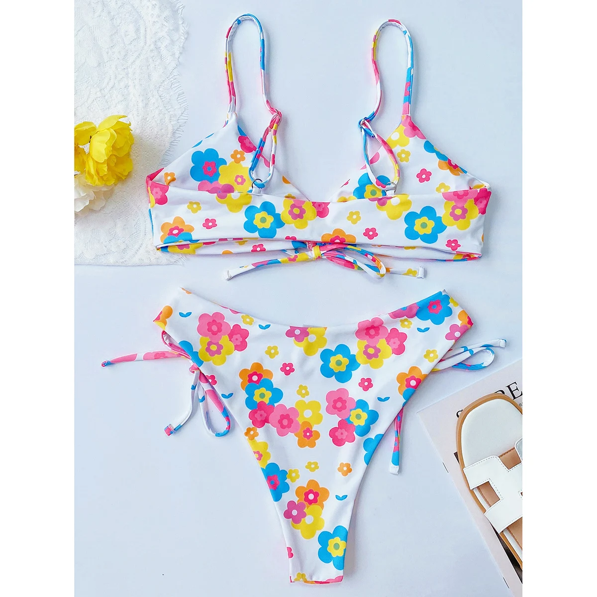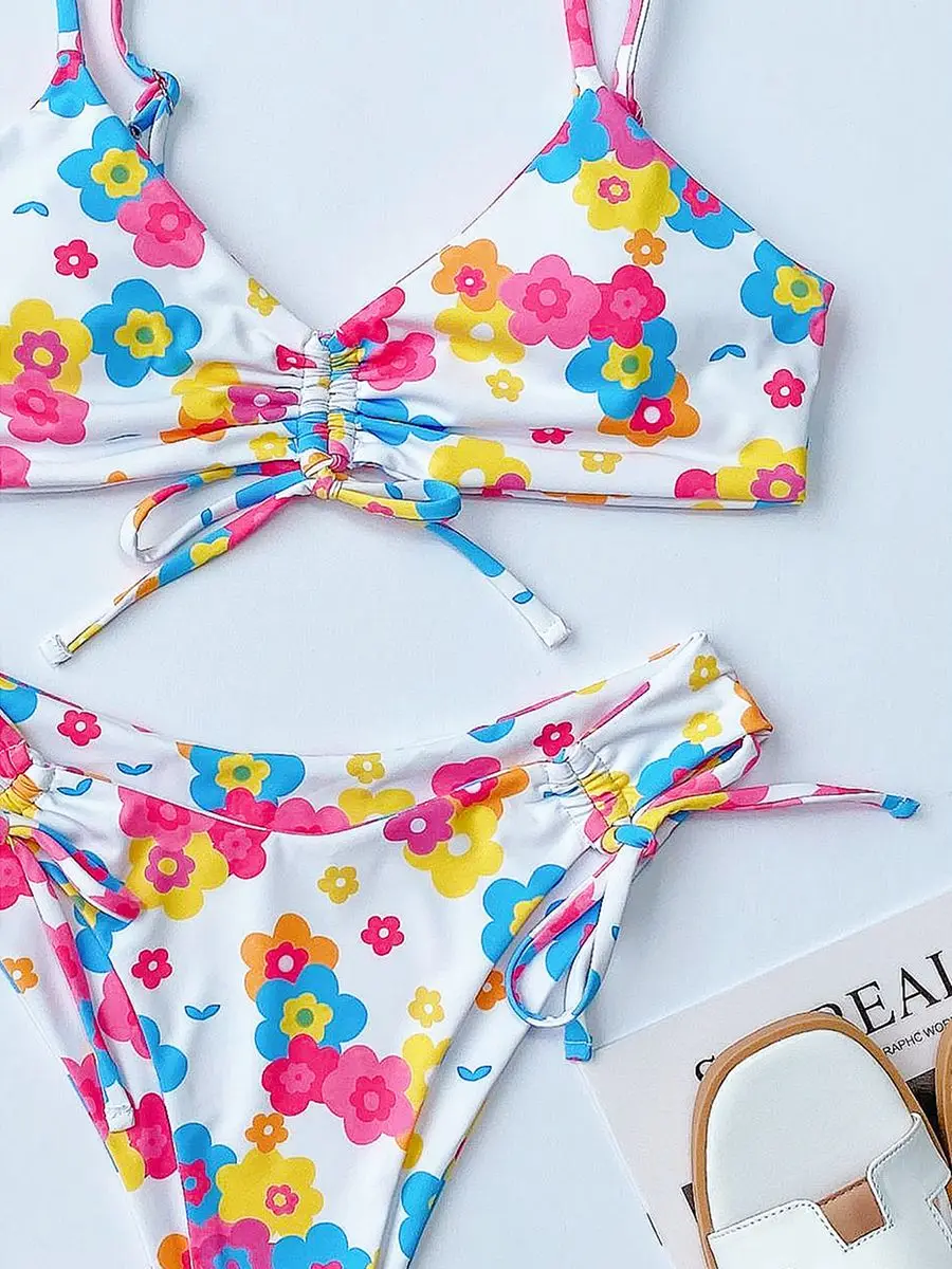 Микро Бикини 2022 сексуальный комплект бикини женский купальник с цветочным принтом купальник с высокой талией женские купальные костюмы с Пуш-Ап купальный костюм