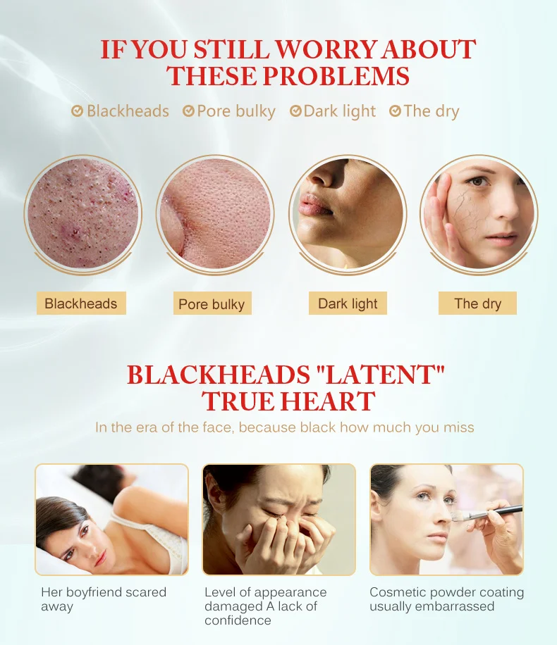 Упрямый черный нос1. Черная нагота2. Черный цвет определяет корни3. Совет, чтобы показать нежность и безупречностьМаленькие прыщи1. Поры громоздкие имеют акне2. Маленькие прыщи3. Очистка порЧерные головки лба1. Упрямая черная головка, такая как домик для ногтей2. Чистый белый цвет кожи3. Все более и более тонкая кожа