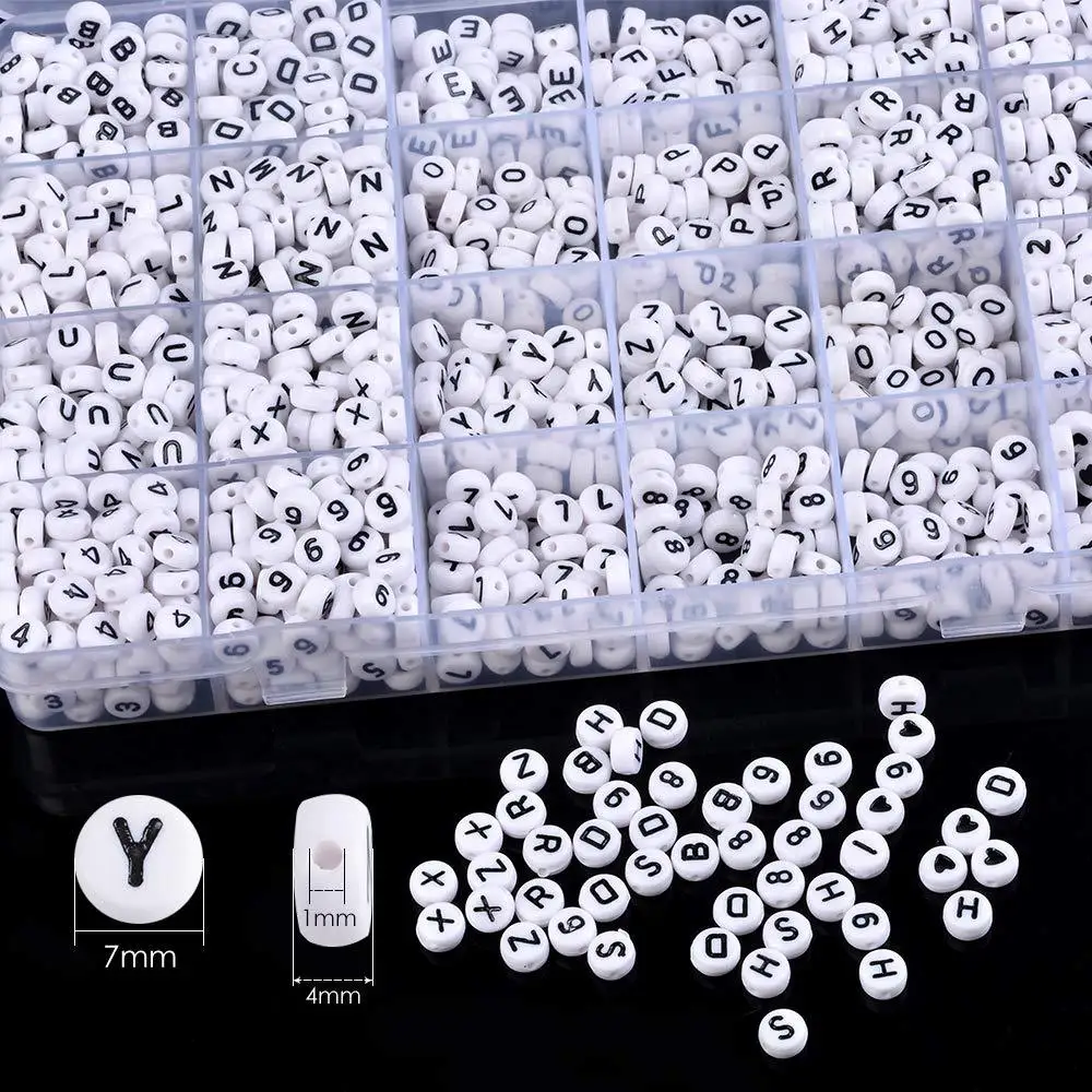 Круглые буквы россыпью 4x7 мм, 26 дюймов, 1200 шт., квадратные акриловые буквы для самостоятельного изготовления браслетов, ожерелий, ювелирных изделий, аксессуары для изготовления
