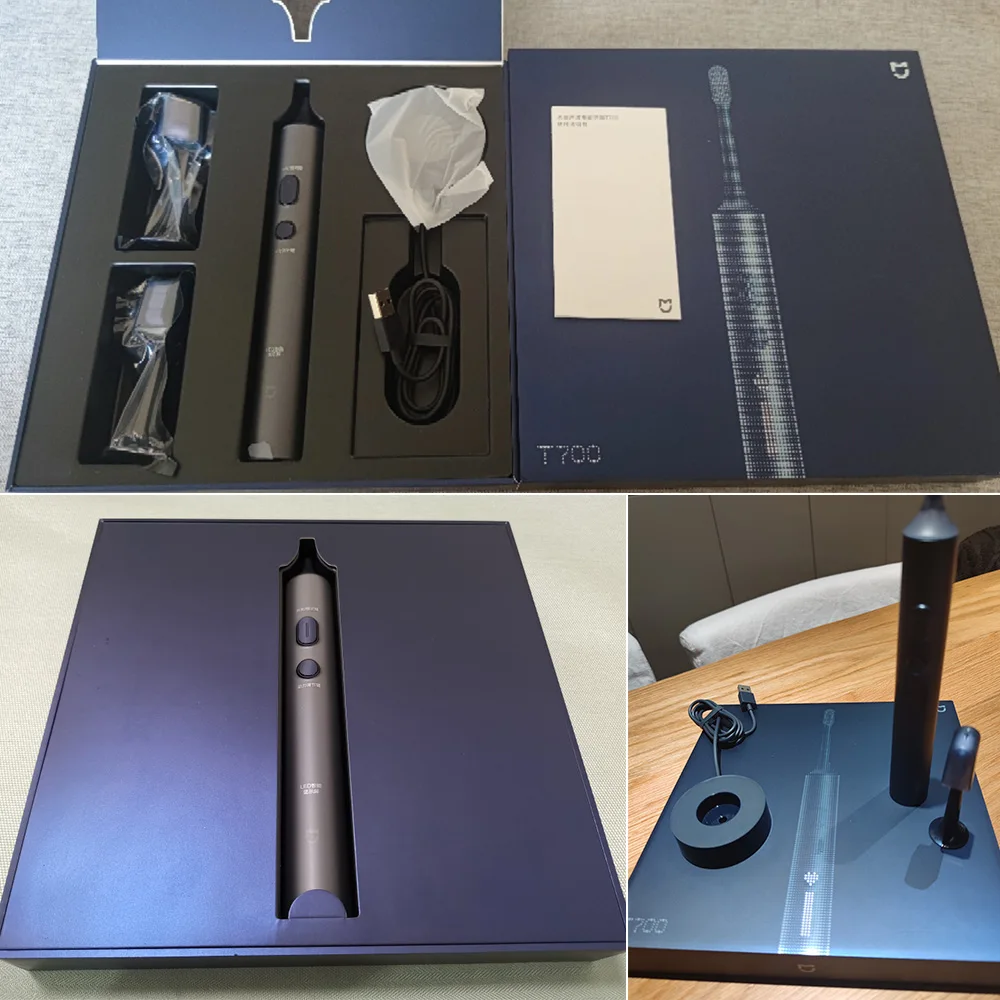 1. Описание:Электрическая зубная щетка XIAOMI MIJIA T700, водонепроницаемая перезаряжаемая зубная щетка IPX7 с таймером/3 + режима/2 головки щетки, умная отбеливающая зубная щетка, работает с приложением Mijia, беспроводная гигиена полости рта для взрослых и детей2. Особенности:Крупномасштабный светодиодный смарт-экран, функция режима четкая с первого взгляда, вы можете настроить индивидуальные имена и выражения.Высококачественная сверхмягкая щетина и сверхтонкая Насадка-щетка 4 мм очень подходят для чувствительной полости рта, мягкие, деликатные и не вызывают раздражения.Звуковой двигатель с магнитной левитацией обеспечивает супер чистящую способность и бесступенчатый контроль мощности для точного контроля силы чистки.Работает с приложением MIJIA-вы также можете настроить собственную силу и продолжительность чистки, подключившись к приложению Mijia для удовлетворения различных потребностей.Когда сила чистки слишком сильна, активируется напоминание о превышении давления, чтобы предотвратить кровотечение десен из-за чрезмерной силы.Имеет Водонепроницаемость IPX7, емкость аккумулятора 1050 мАч и поддерживает беспроводную зарядку.3. Инструкции:Включение:Короткое нажатие кнопки питания, по умолчанию используется стандартный режим для первого включения питания.Режим переключения:В течение 10 секунд после запуска короткое нажатие для переключения режима.Пауза:Нажмите и удерживайте в течение 2 секунд, чтобы сделать паузу, и автоматическое выключение после 30 секунд остановки.Выключение:Через 10 секунд после включения питания короткое нажатие для выключения питания; В течение 10 секунд после включения питания непрерывное короткое нажатие для переключения режима до выключения питания.Совет:Этот продукт запоминает последний режим, который оставался более 10 секунд. Выключите после пребывания в определенном режиме более 10 секунд, какой режим является режимом по умолчанию при следующем включении устройства.Введение режима чистки:Рисунок:Стандартный режим-подходит для ежедневной чистки полости рта.S узор:Деликатный режим-подходит для людей с чувствительными зубами.Узор сердца:Индивидуальный режим настройки-по умолчанию используется супер-режим за 2 минуты. Больше функций и режимов можно установить в приложении MIJIA: время чистки, предотвращение разбрызгивания в течение 10 секунд, режим новичка и многое другое.4. Характеристики:Название товара: электрическая зубная щетка XIAOMI MIJIA T700Режим: MES604Цвет: синийРазмер продукта: 27 (диаметр) * 255 ммВес нетто: прибл. 220 гМатериал головки щетки:Зарядка: Беспроводная зарядка, время зарядки 6 часовНоминальный Вход: 5 В, 1 АНоминальная мощность: 4,2 ВтВодонепроницаемость: IPX75. Примечание:Из-за ручных измерений возможна небольшая разница.Фактическое использование может немного отличаться в зависимости от конкретной ситуации.Цвет товара на фотографиях может слегка отличаться на разных мониторах компьютера так как мониторы откалиброваны по-разному.Гарантия на товар только для клиентов в Китае,Мы не можем гарантировать зарубежные клиенты, надеемся на понимание.6 посылка комплектация:1 * хост2 * крышка головки щетки1 * крышка силового вала2 головки щетки1 * Зарядная база1 * Руководство (CN)