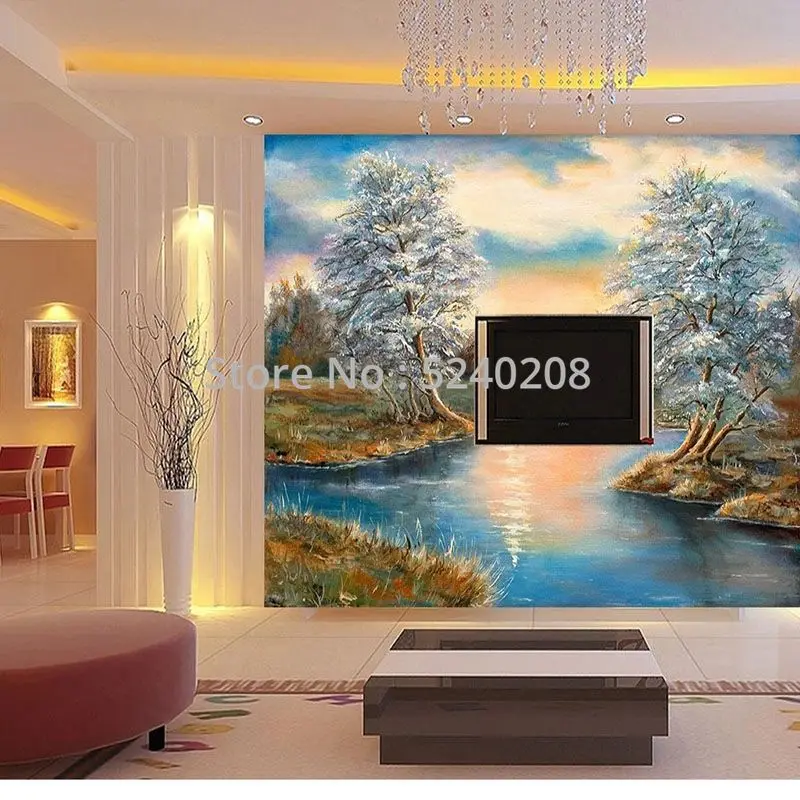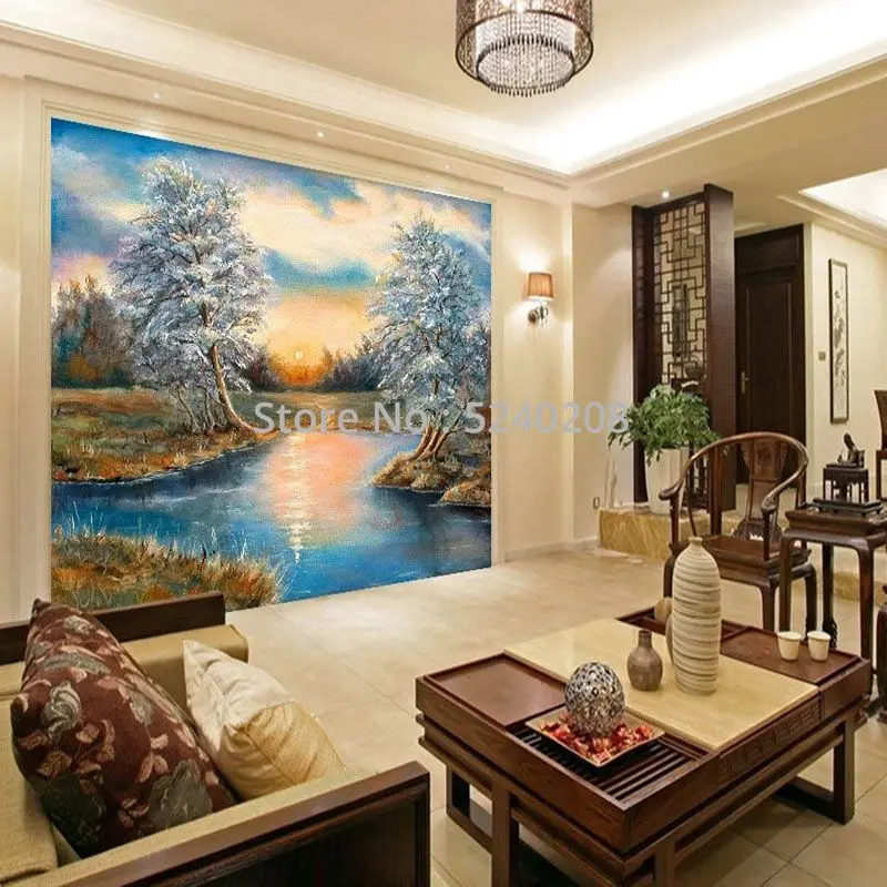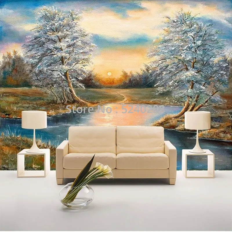 Самоклеящиеся водонепроницаемые обои на заказ, пейзаж, декоративная живопись, масляный фон, Настенная 3D наклейка