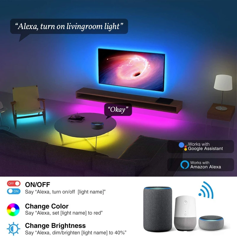 Светодиодная лента Tuya Bluetooth, умный сенсорный монитор с Wi-Fi, может синхронизироваться с музыкой, подходит для Рождественского украшения