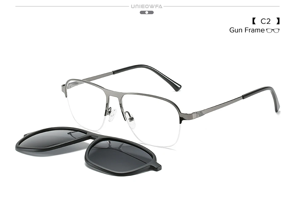 Мужские и женские очки без оправы, поляризационные солнцезащитные очки с магнитной клипсой, с полуободками для коррекции близорукости