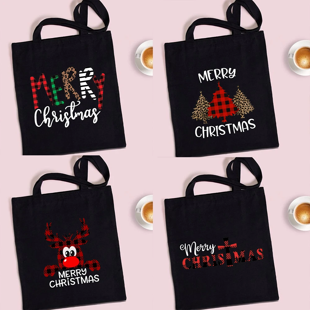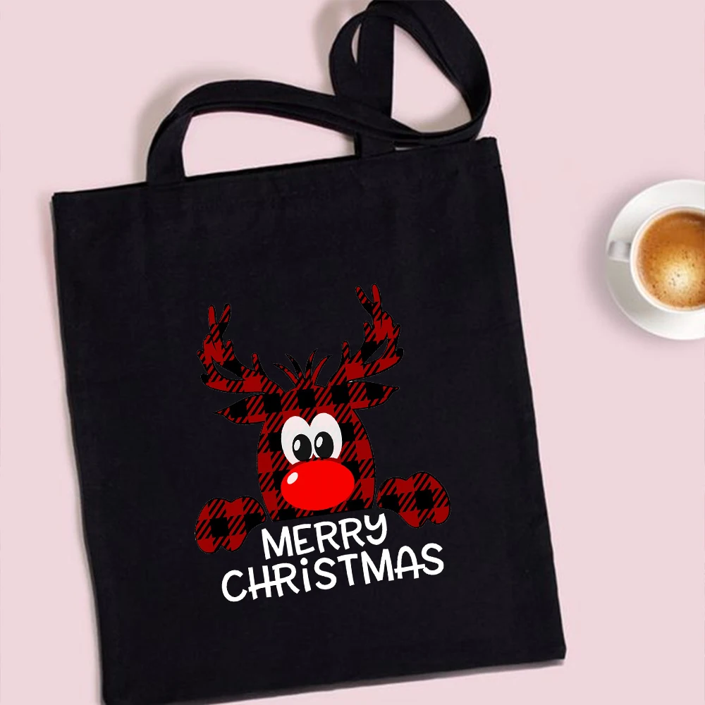 Сумки для покупок для женщин, тканевые сумочки на плечо с принтом оленя, многоразовые складные экологически чистые тоуты для хранения, рождественские подарки