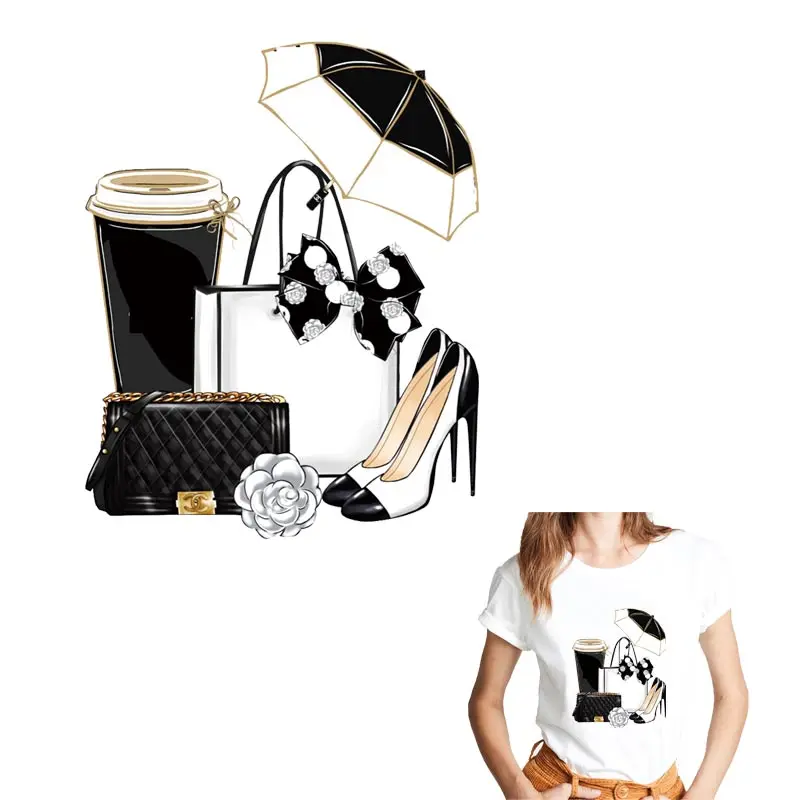 Термонаклейка на высоком каблуке в виде кофейного пакета, стирающаяся термонаклейка сделай сам, переводная наклейка с помощью утюга для одежды, модный дизайн, нашивки с аппликацией для украшения одежды