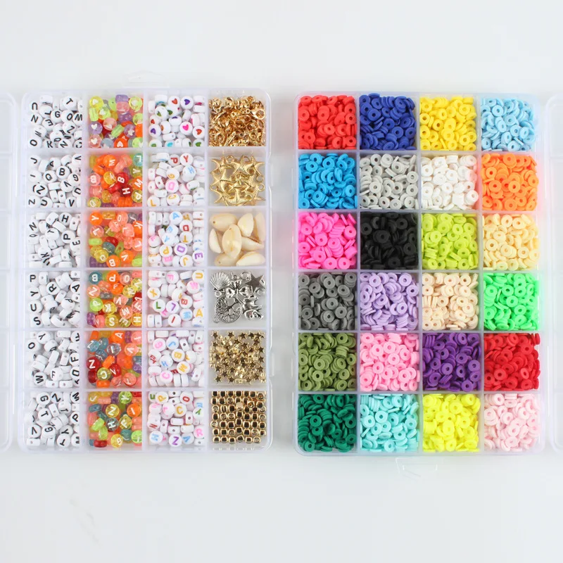 48 ячеек глины + набор букв 24 цвета 4800 шт. 6 мм плоские круглые бусины из полимерной глины 900 шт. акриловых букв для изготовления ювелирных изделий своими руками