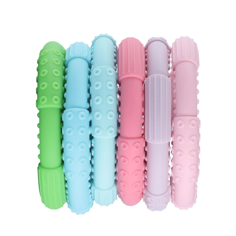 Материал: 100% пищевой силикон, нетоксичный, без BPA, свинца, кадмия, фталатов, ПВХ и латекса Размер: 85*13 мм посылка в том числе: 1 * жевательное ожерелье эти жевательные чаи могут использоваться для детей, чтобы помочь при прорезывании зубов, а также используются для снятия стресса для людей с особыми потребностями. Идеально подходит для людей, которые используют жевание, чтобы успокоить или сфокусироваться, значительно уменьшает беспокойство и стресс, помогает сохранять спокойствие и эффективно останавливать их от жевания рубашек или кусания ногтей. Используйте их для упражнений в мышцах рта и укрепления оральной силы, выносливости, подвижности и контроля. Он также может быть использован в качестве ротовой двигательной терапии для практики кусания/жевания навыков. Различные текстуры хороши для детей, которые также нуждаются в тактильном усилении.