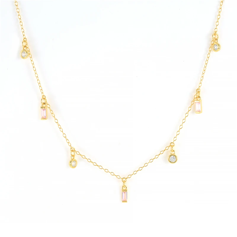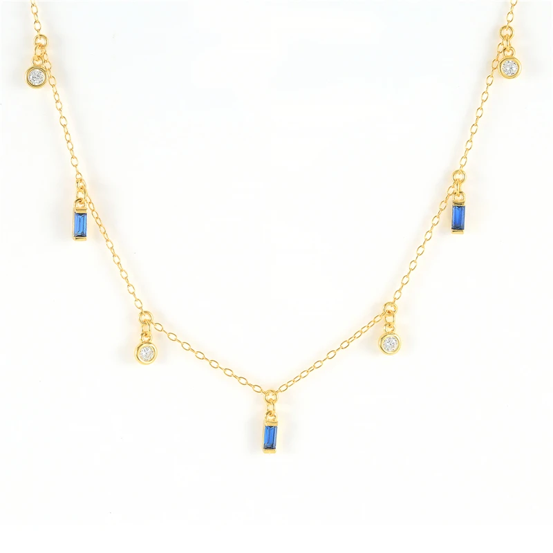 Ожерелье-цепочка из стерлингового серебра 925 пробы с цветным прямоугольным цирконием, ожерелья с подвесками для девочек, друзей, подарок украшения для свадьбы