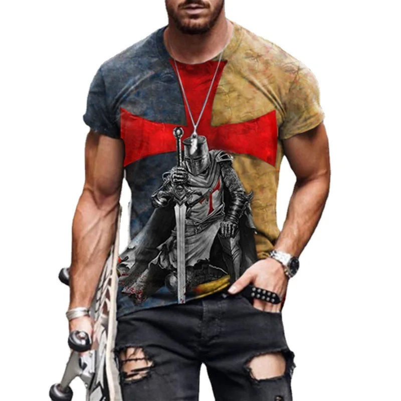 Мужская футболка большого размера, с винтажным принтом Рыцаря тампл...