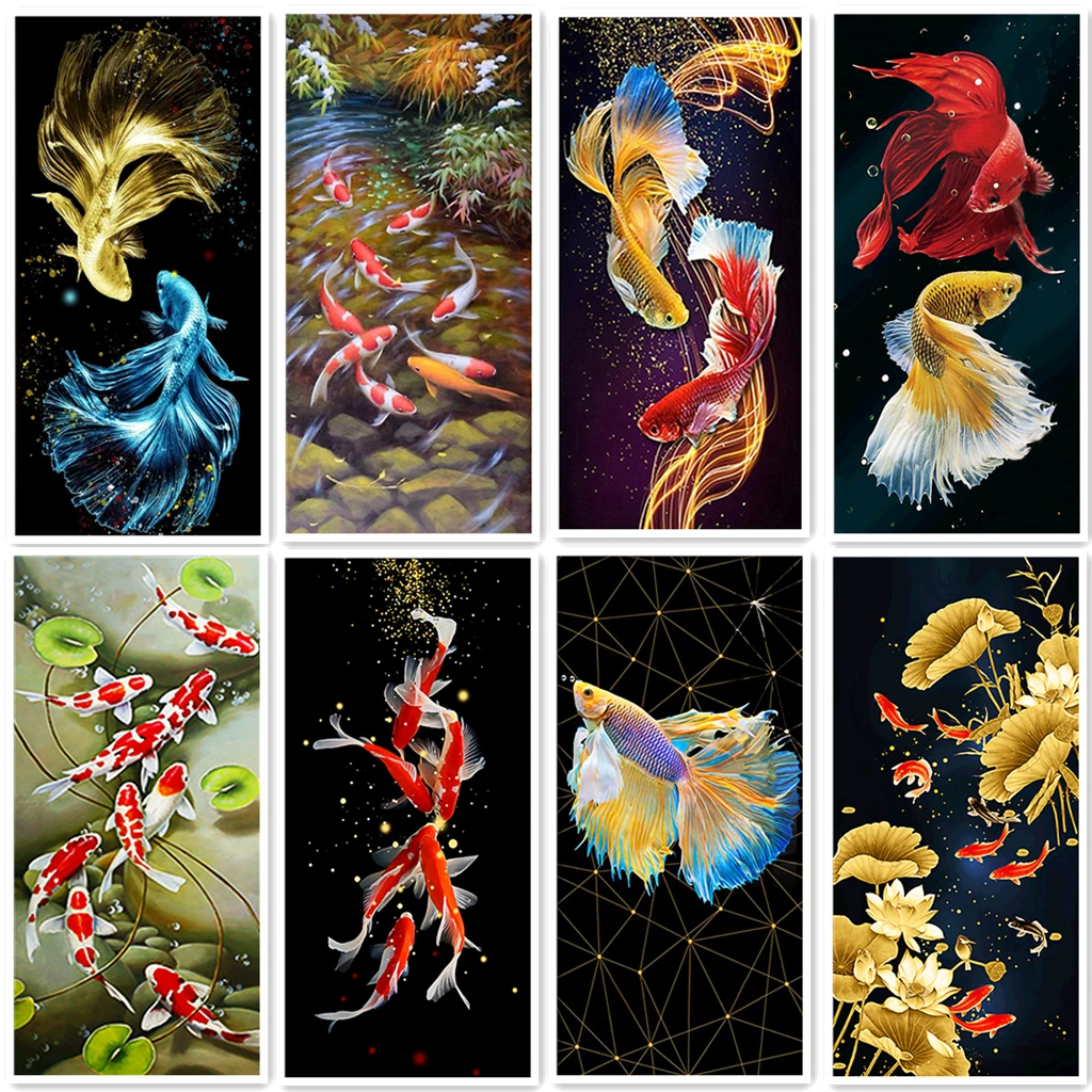 5D DIY алмазная живопись, набор животных, карп, полная Алмазная вышивка, пейзаж, Koi, мозаика, искусство, картина стразы, украшение для дома, подарок