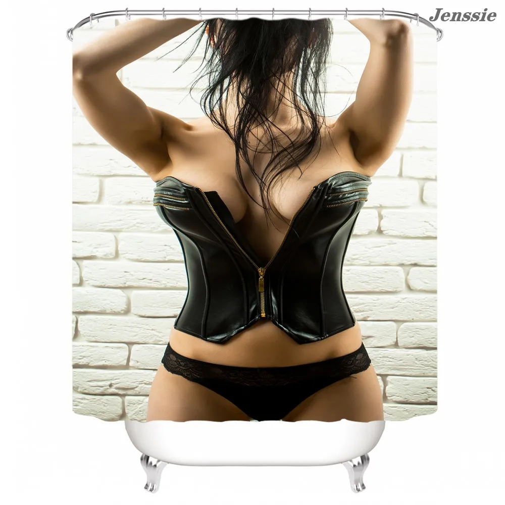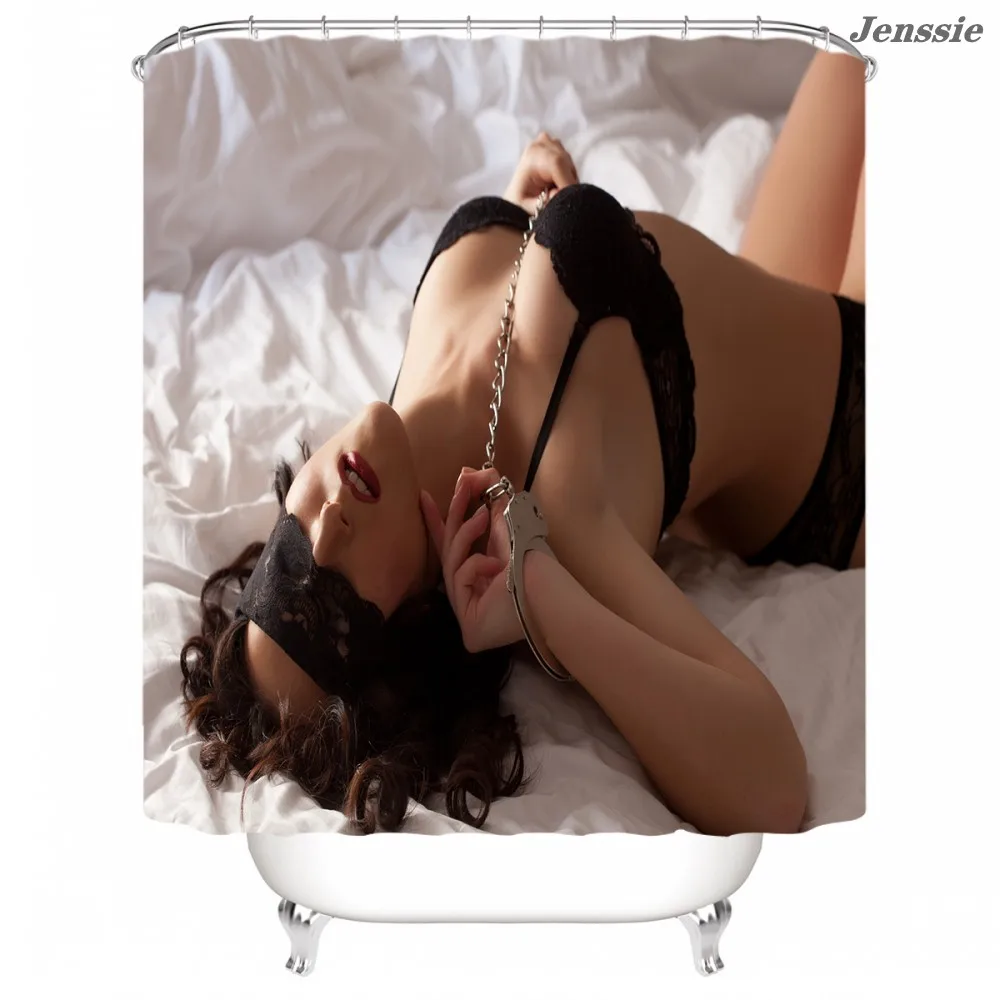 Сексуальная Женская занавеска для душа, черное кружевное белье, занавеска для душа, сексуальные наручники, занавеска для ванны, водонепроницаемая занавеска для душа из полиэстера