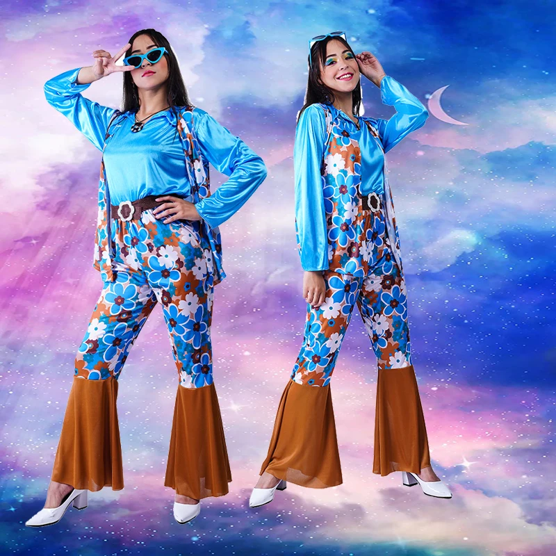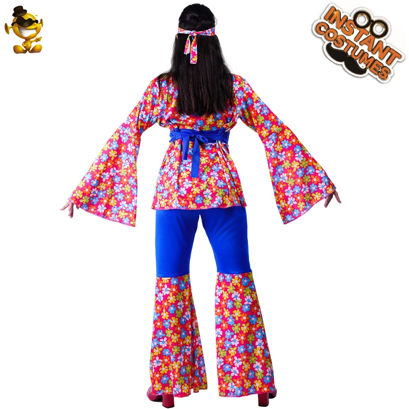Женское платье в стиле хиппи QLQ, нарядное платье для взрослых в стиле 80-х, Костюм хиппи, Цветочный наряд для косплея, костюмы на Хэллоуин 1970-х