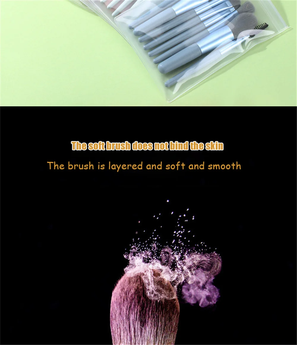 Набор кистей для макияжа, 8 шт., Портативная сумка для хранения, мя...