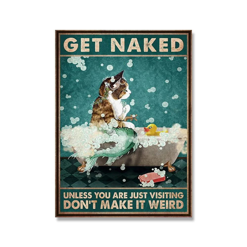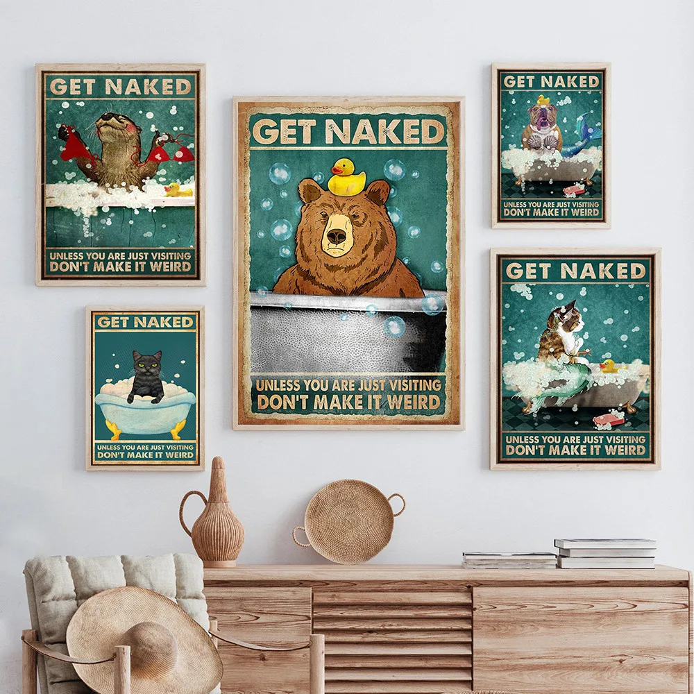 Русалка, кошка, Выдра, Питбуль, собака, искусство голой, Настенная картина для ванной комнаты, холст для туалета, картины, Ретро Декор для стен комнаты