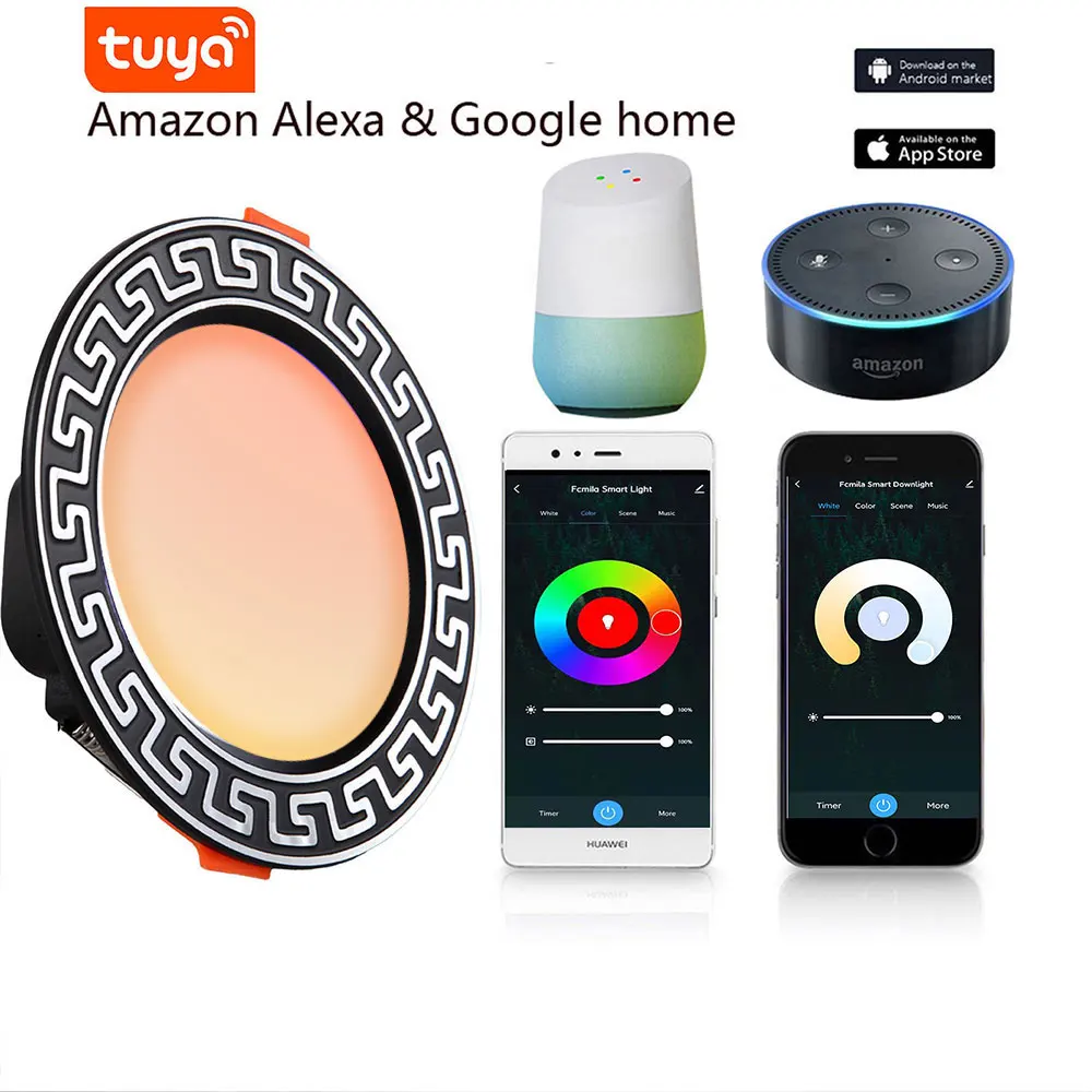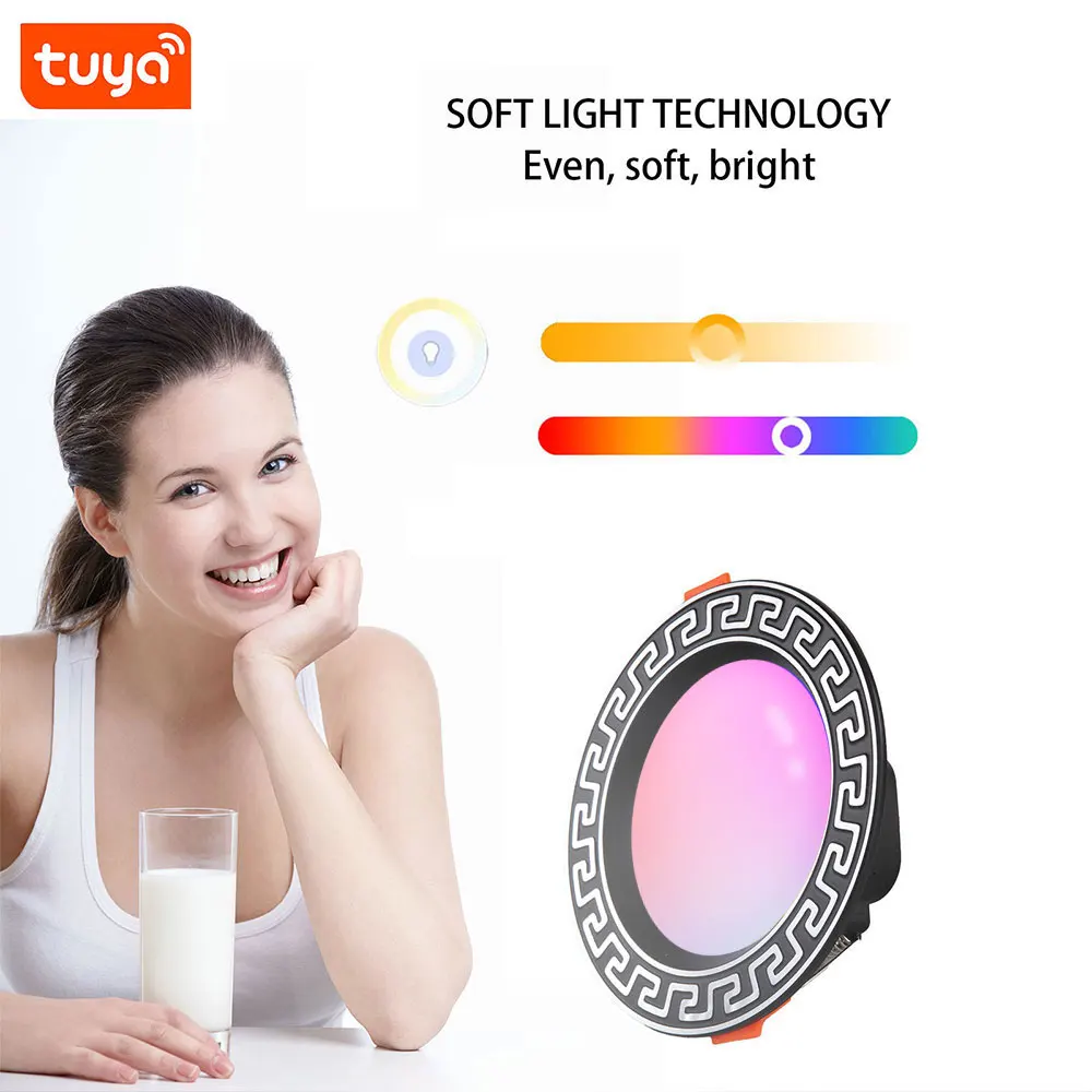 Светодиодный вниз светильник встраиваемые круглые светлые пятна светильник 9W умное затемнение потолочный светильник RGB Изменение цвета Теплый Холодный белый AC85-265V