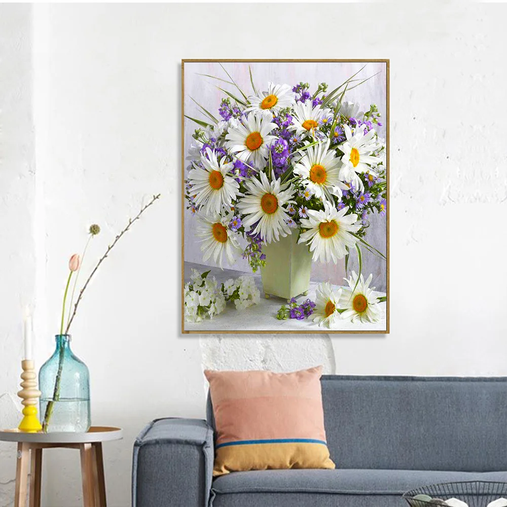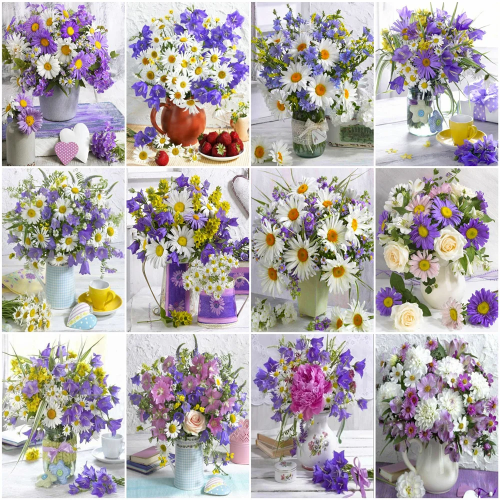 HUACAN живопись маслом по номерам маргаритки цветочные наборы ручная роспись DIY картина по номеру цветок в вазе рисунок декора для дома на холсте