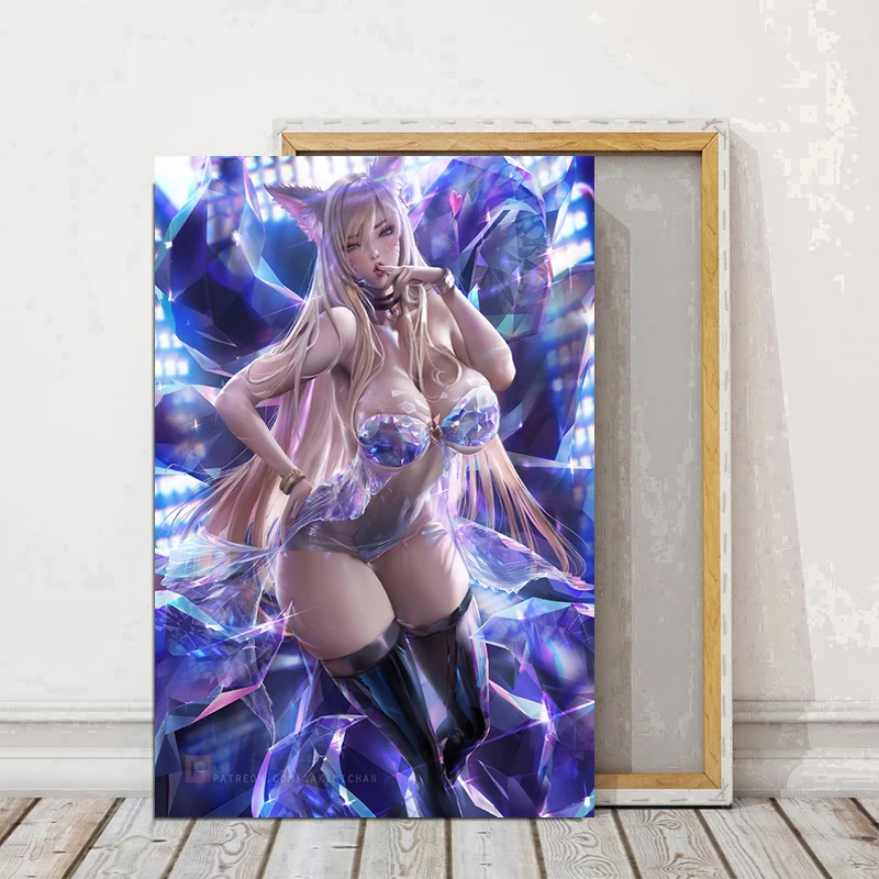 Настенные художественные плакаты с хрустальной девушкой Ahri, персонализированные картины из игры Лига Легенд, на холсте LOL KDA, подвесные картины для декора комнаты