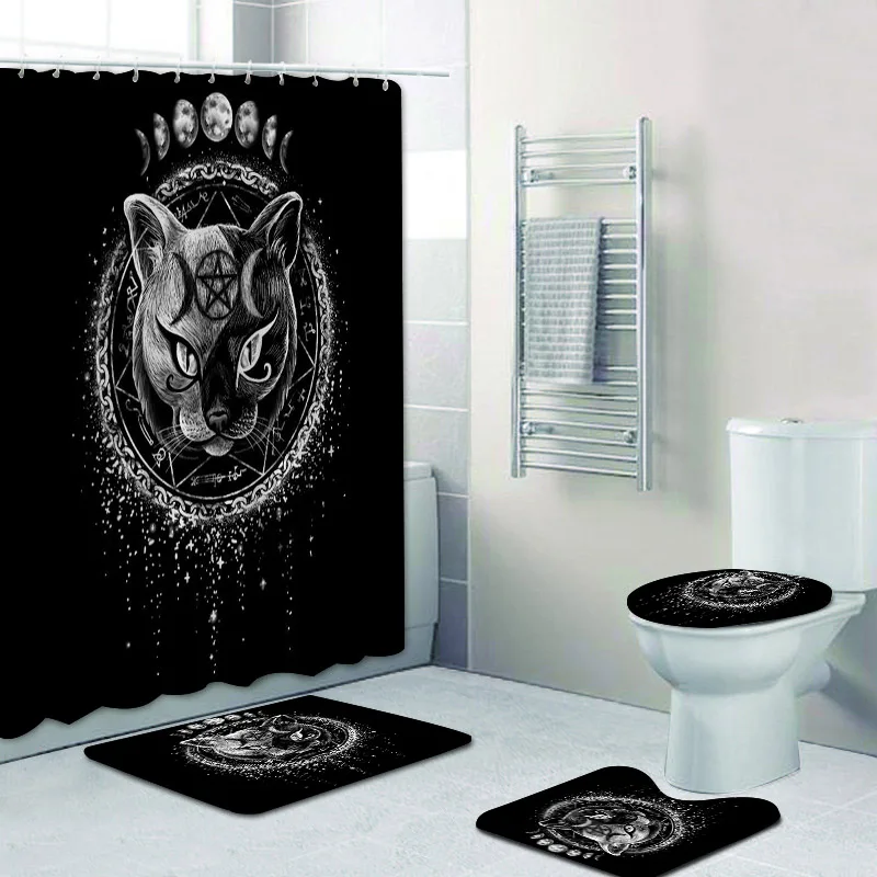 Занавески для душа в готическом стиле, с изображением черного кота, для ванной, готические колдовские, колдовские, для Хэллоуина, для ванны, туалета, декоративные коврики, коврики
