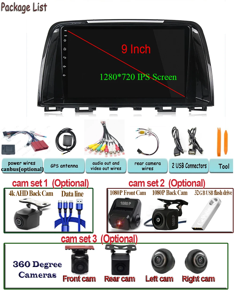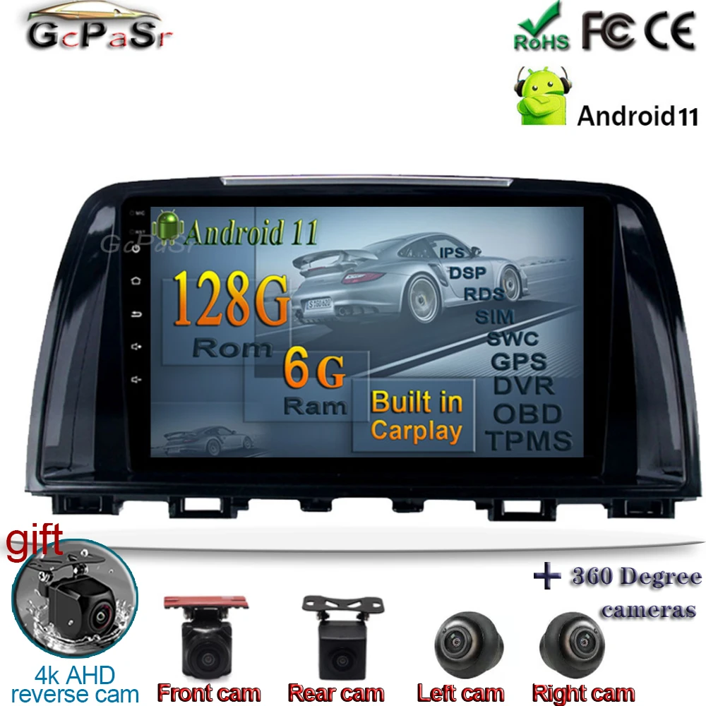Автомагнитола с камерой 360, Android 11, Авторадио для Mazda 6, 3 GL, GJ 2012-2017, автомобильное радио, мультимедийный видеоплеер, GPS-навигация, BT, Wi-Fi