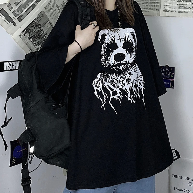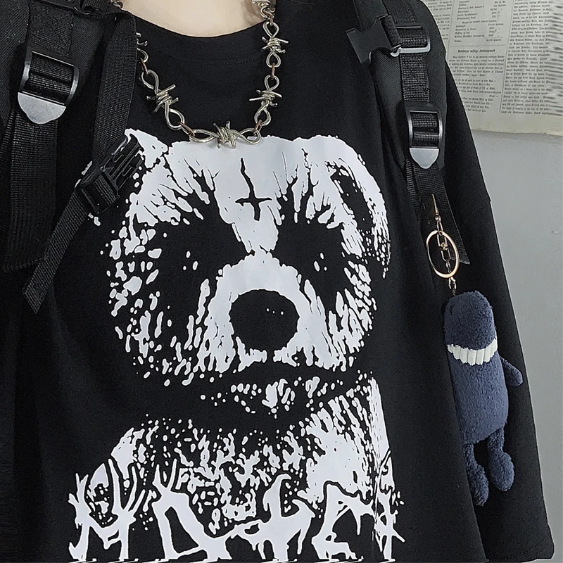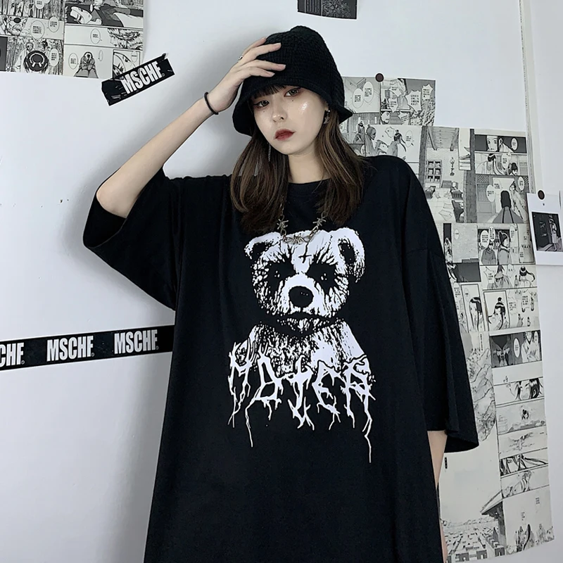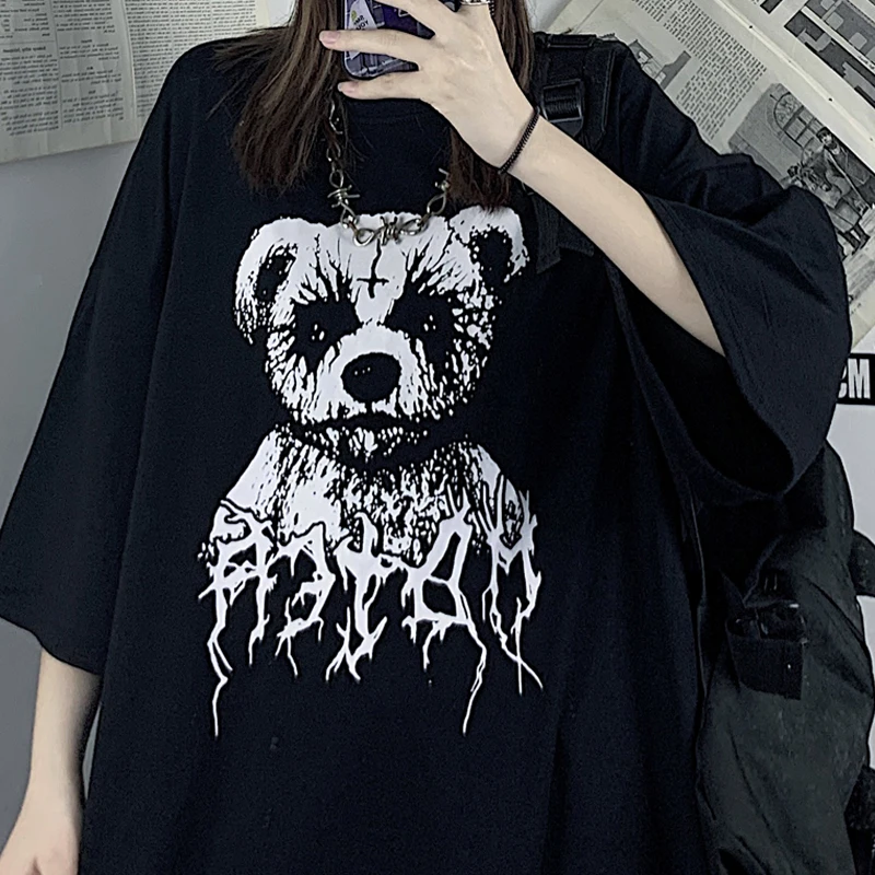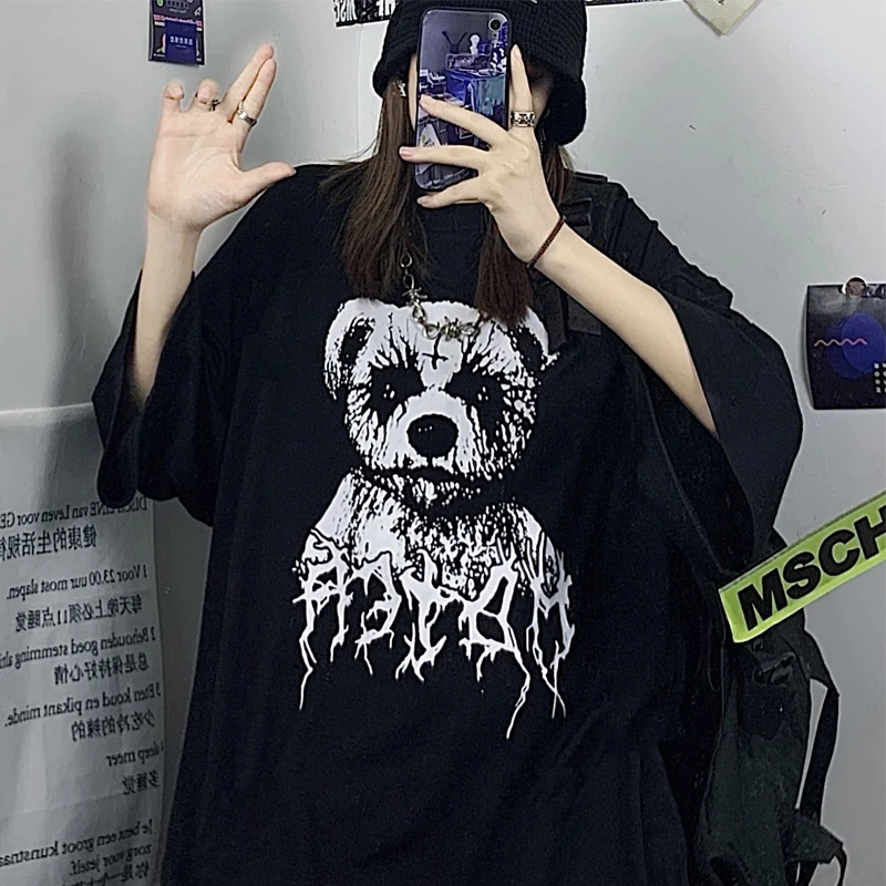 Женская футболка в готическом стиле, свободная футболка в стиле панк, Харадзюку, y2k