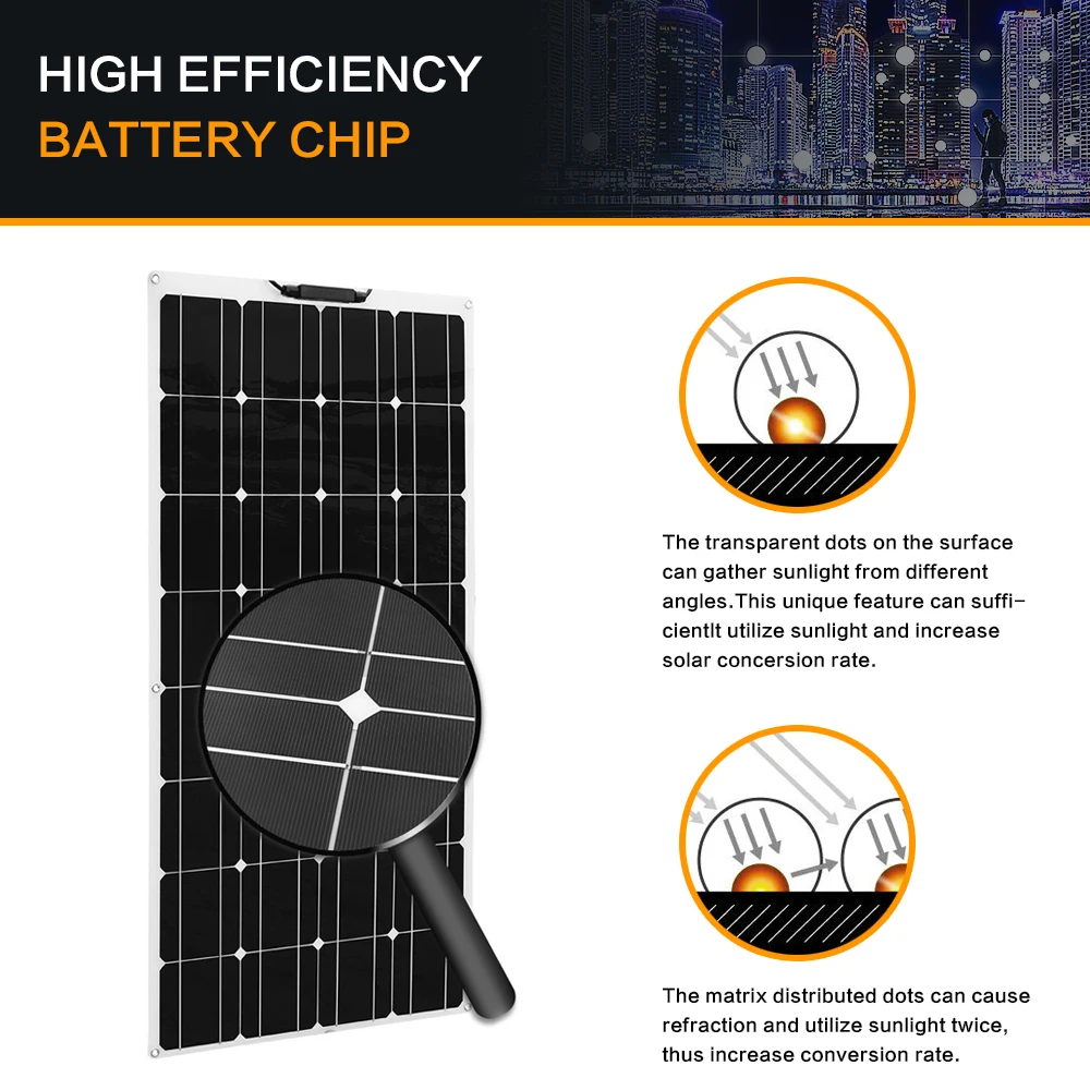 [Гибкий]Эта гибкая солнечная панель является хорошим выбором для изогнутых поверхностей RV, лодки, парусника, яхты, грузовика, автомобиля, тренера, кабины, кемпера, палатки, прицепа, тележки для гольфа или любой другой неправильной поверхности.