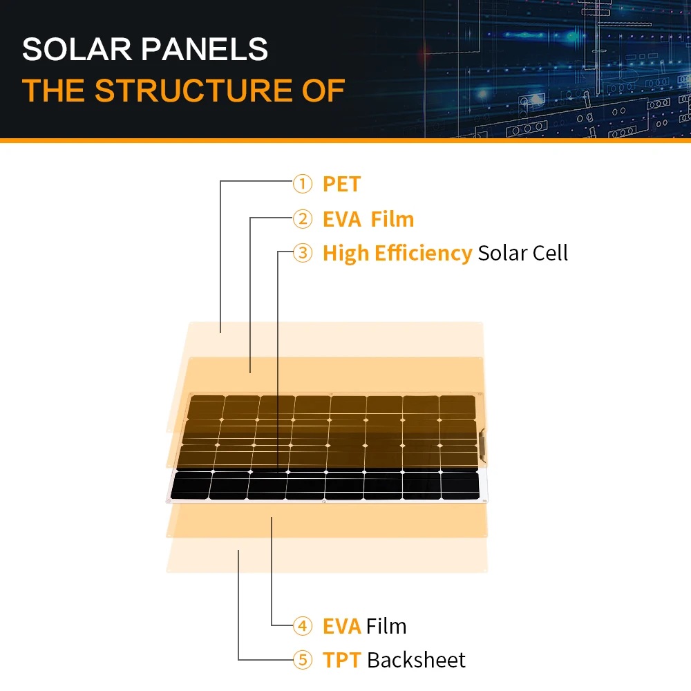 [Хорошие детали]Водостойкая полугибкая солнечная панель гораздо прочнее, чем традиционные модели из стекла и алюминия, распределительная коробка герметичная и водонепроницаемая.