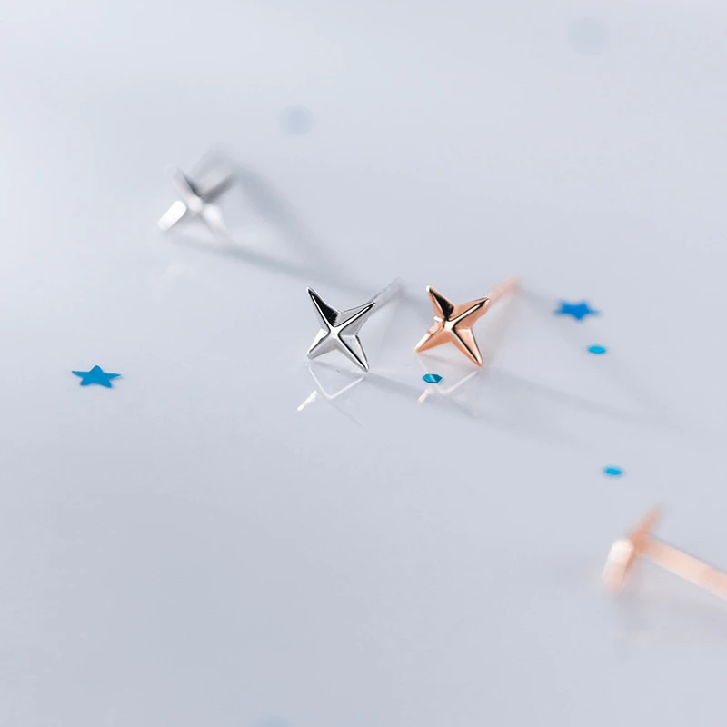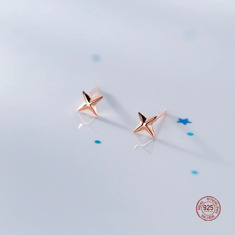 LKO Настоящее серебро 925 пробы милые серьги-гвоздики с крестом и звездой для женщин роскошные ювелирные изделия подарок простые серьги-гвоздики для девочек аксессуары