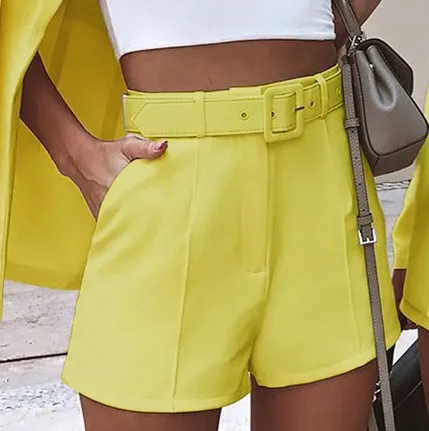 Женский облегающий костюм, Топ с длинным рукавом, мини-шорты и штаны, соблазнительный Модный повседневный костюм с воротником и тканевым поясом, женские комплекты 2021