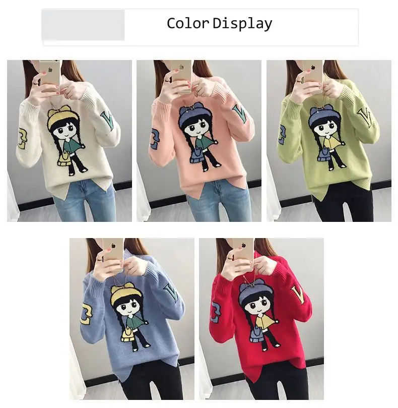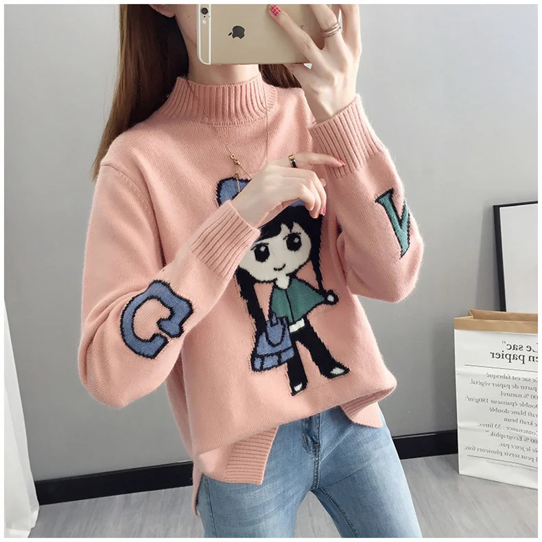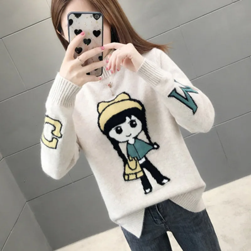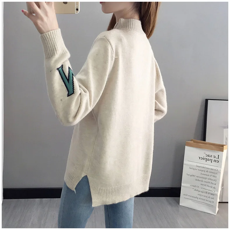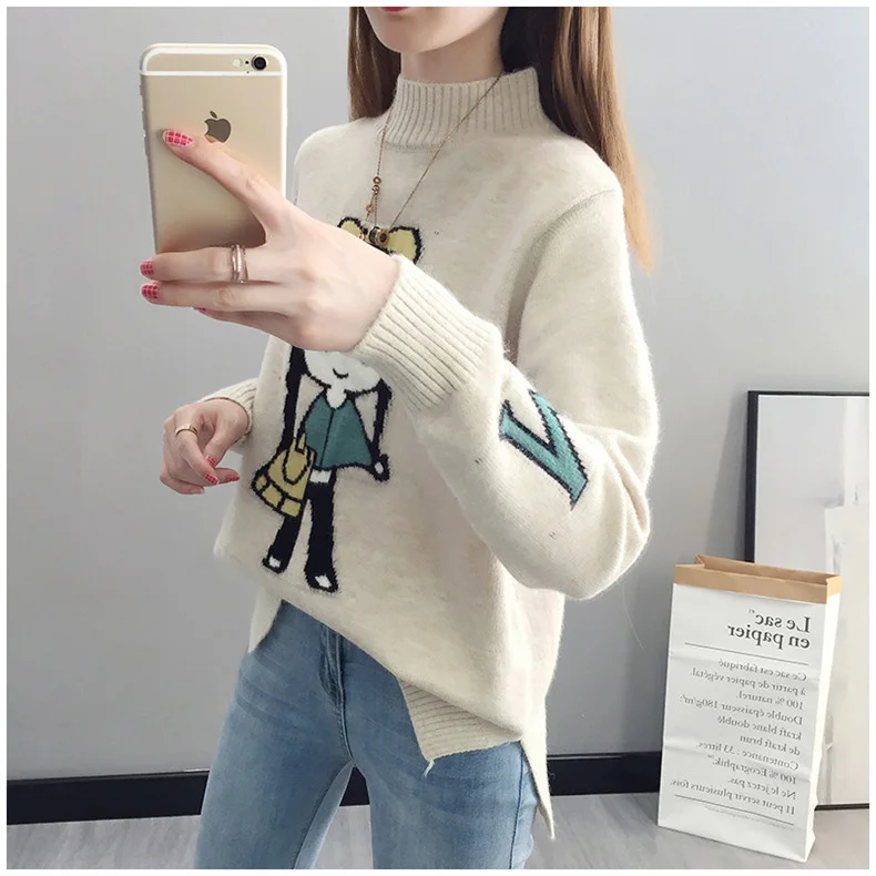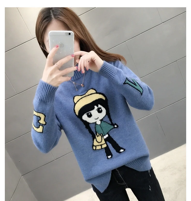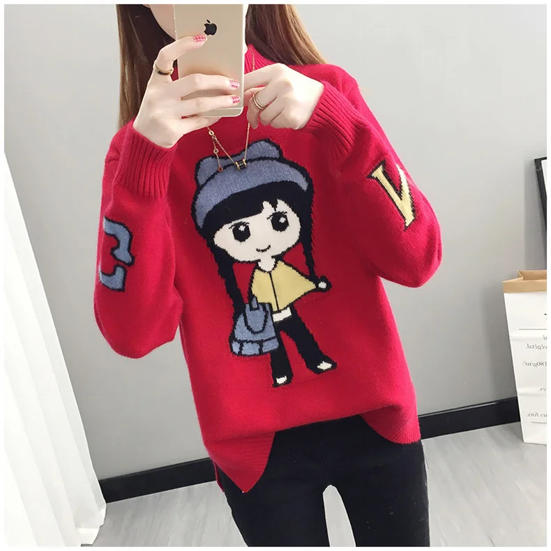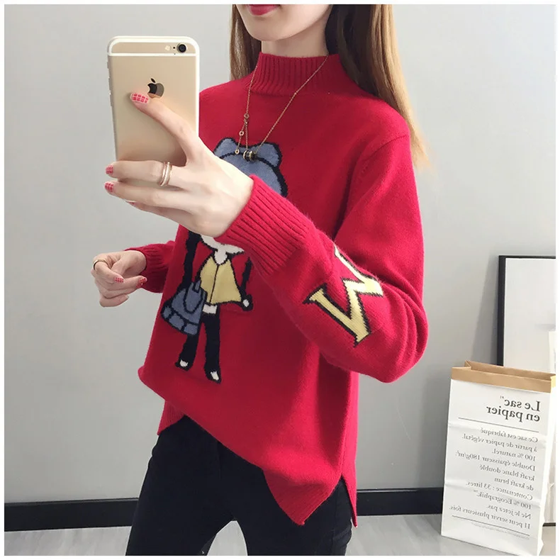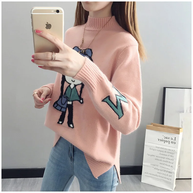 Корейский Новый стиль осенние женские свитера свободные пуловеры для девушек с вышивкой Милая Водолазка с длинным рукавом тонкие женские свитера Одежда