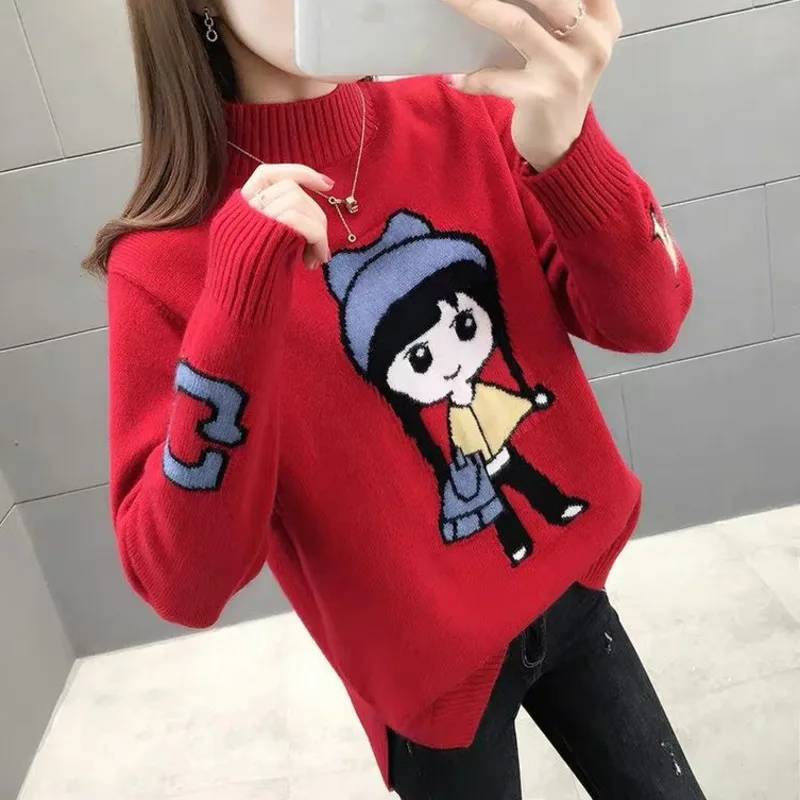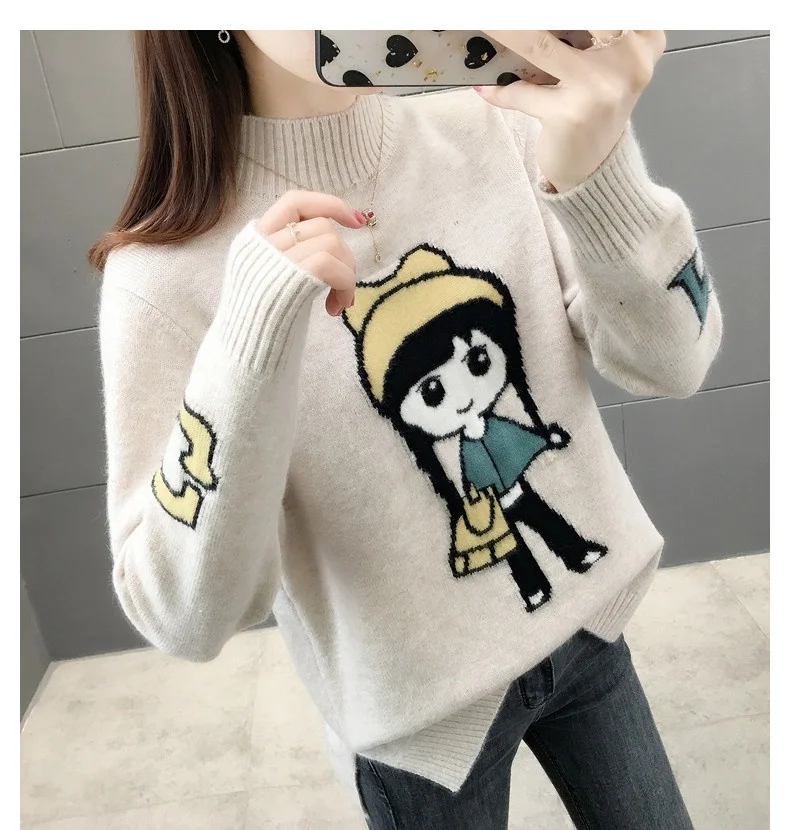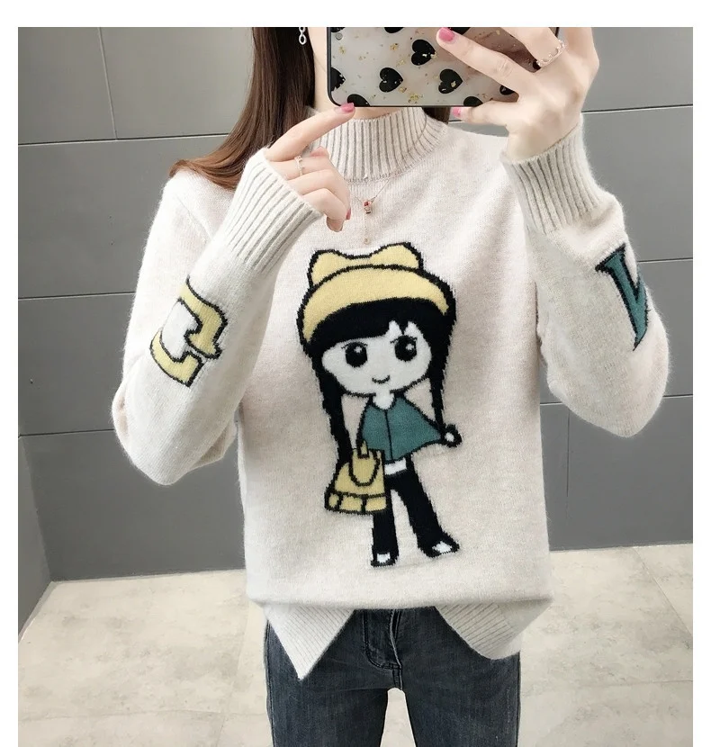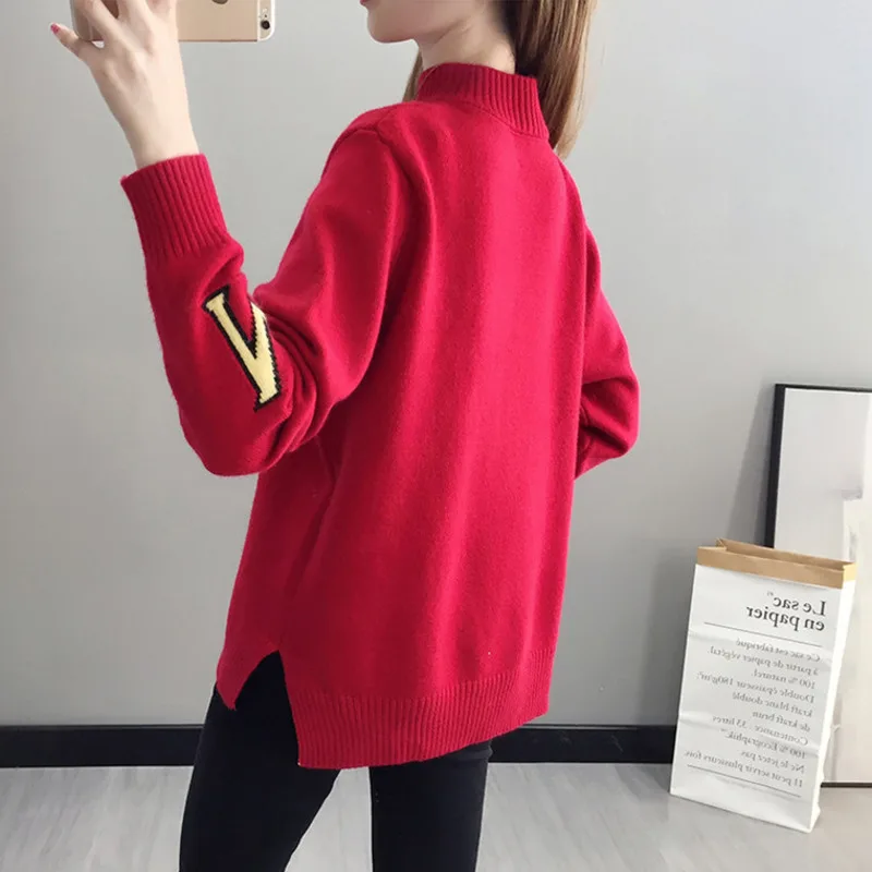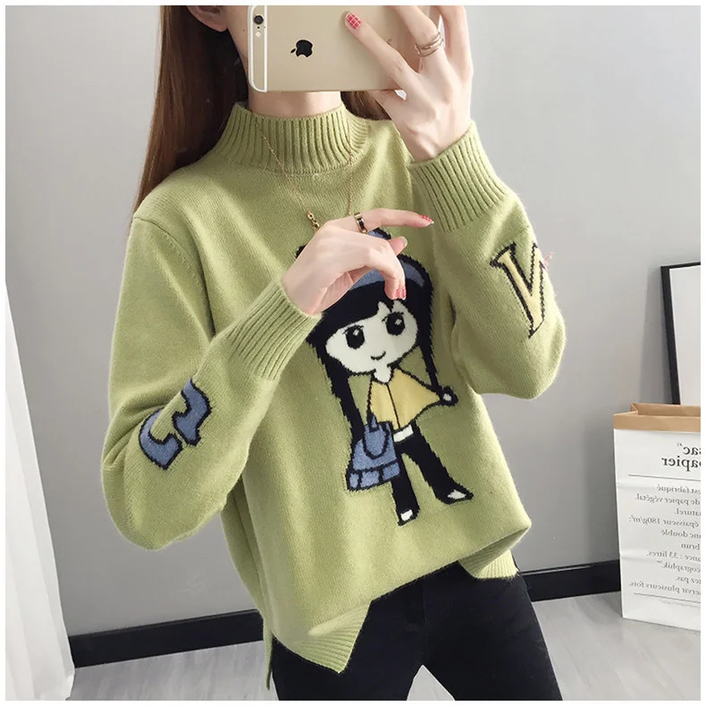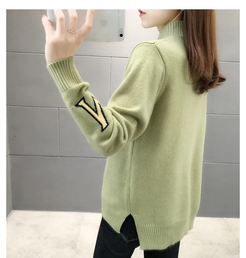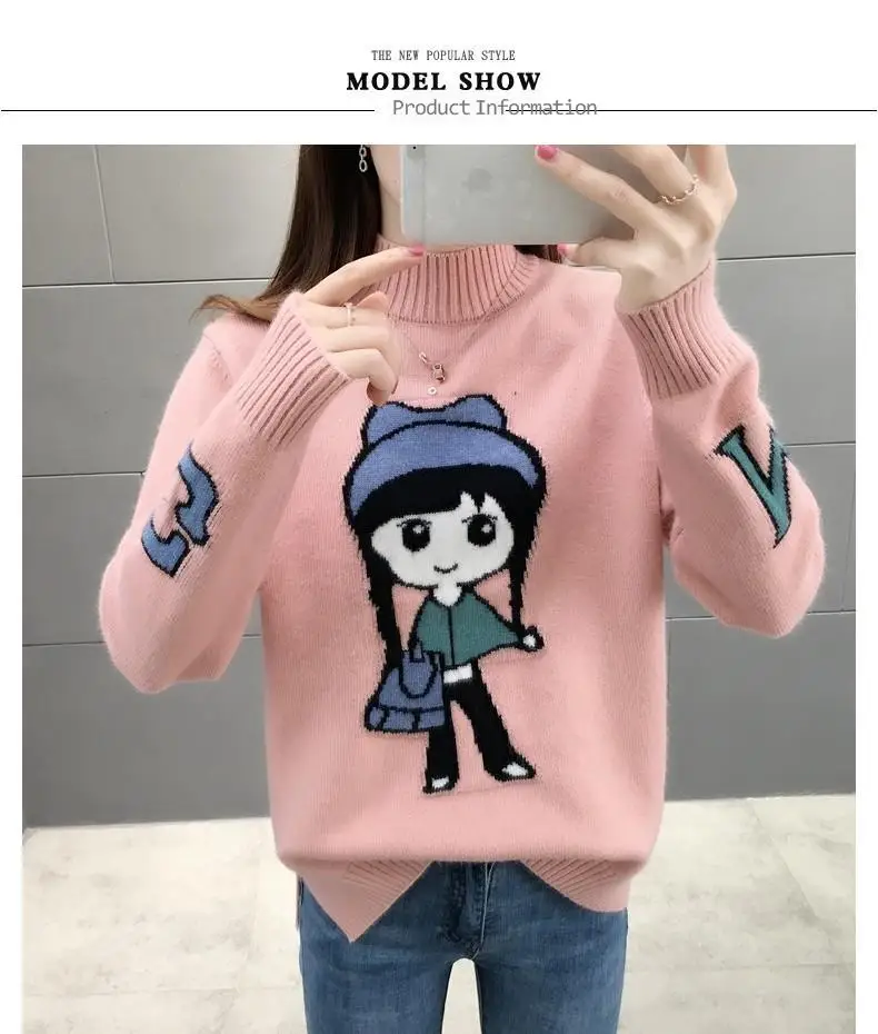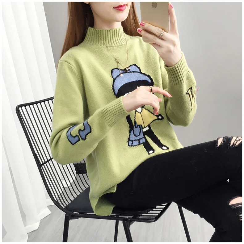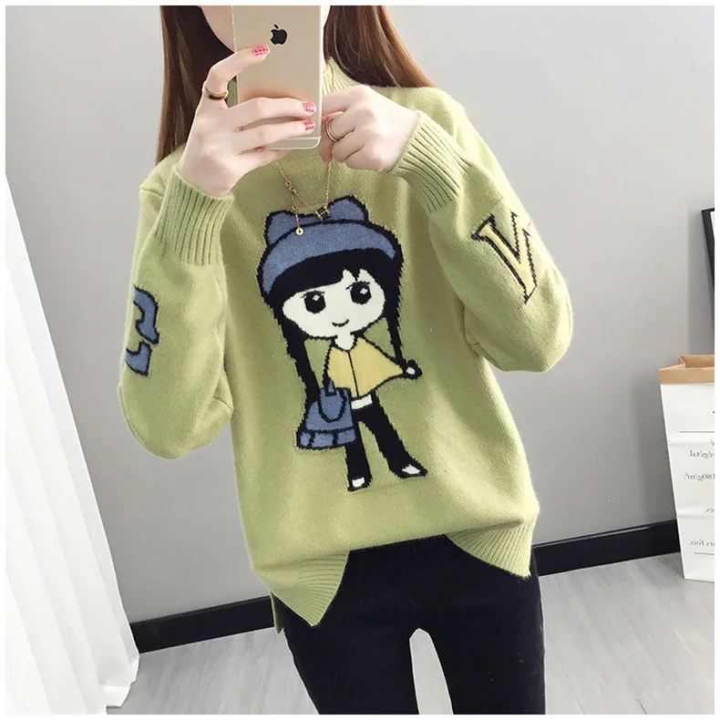 Корейский Новый стиль осенние женские свитера свободные пуловеры для девушек с вышивкой Милая Водолазка с длинным рукавом тонкие женские свитера Одежда