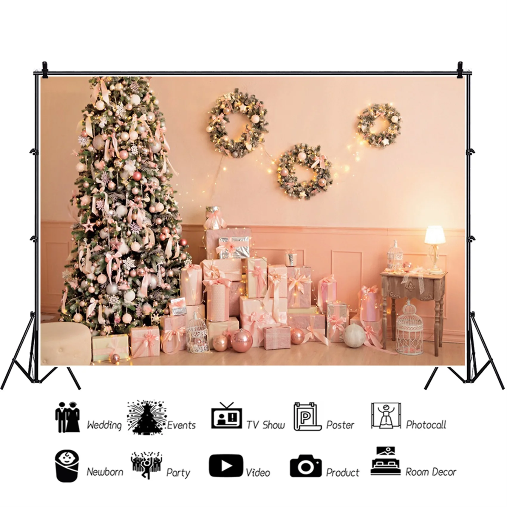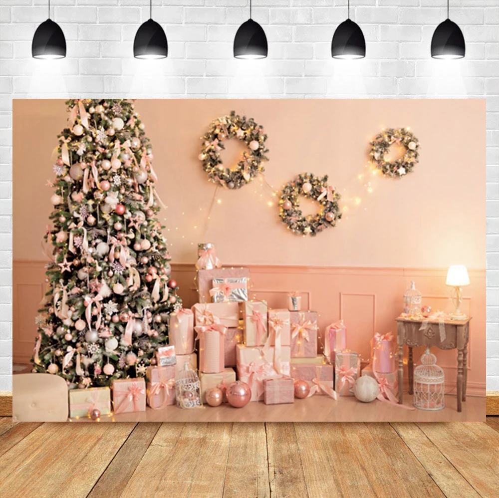 Laeacco розовая Рождественская елка теплая Крытая Подарочная гирлянда день рождения портрет фото фон фотографический фон для фотостудии