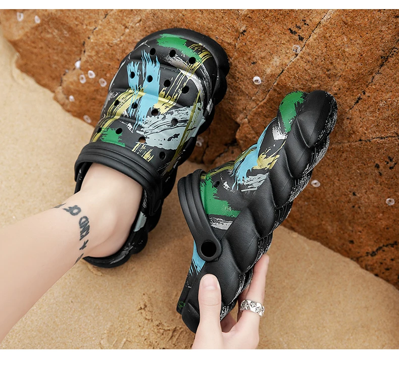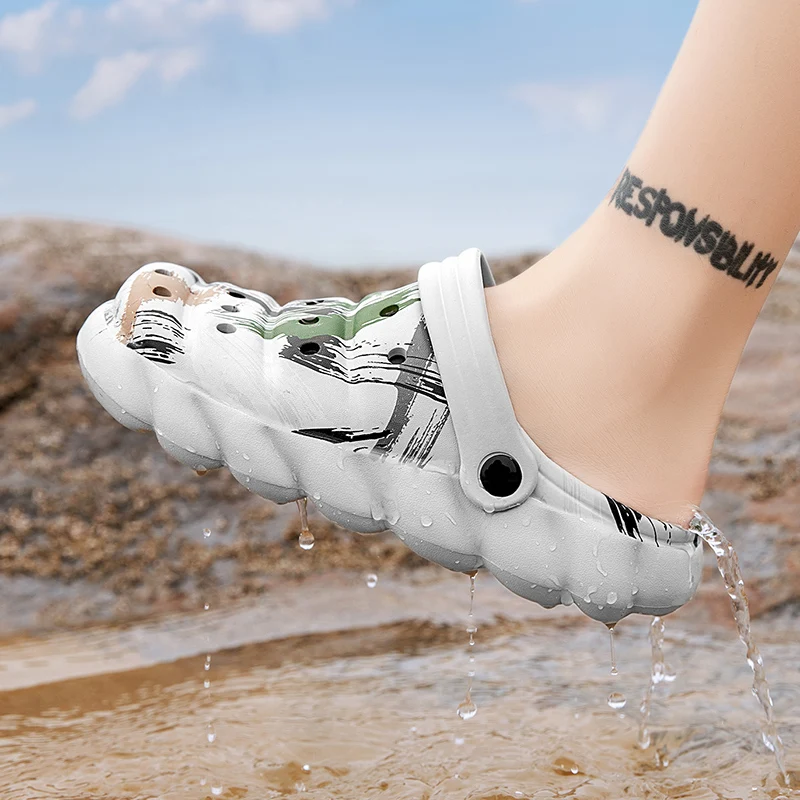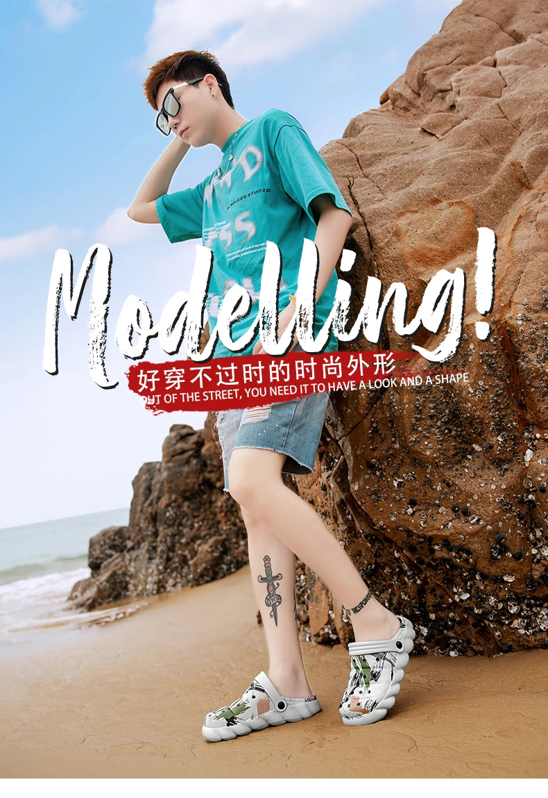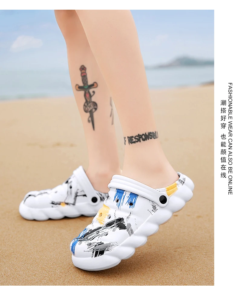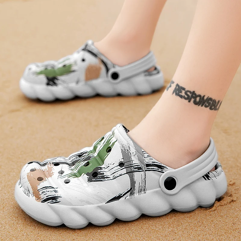 Мужские сандалии с принтом, летние дышащие Слиперы на мягкой подошве, повседневные сандалии для ходьбы, 2021