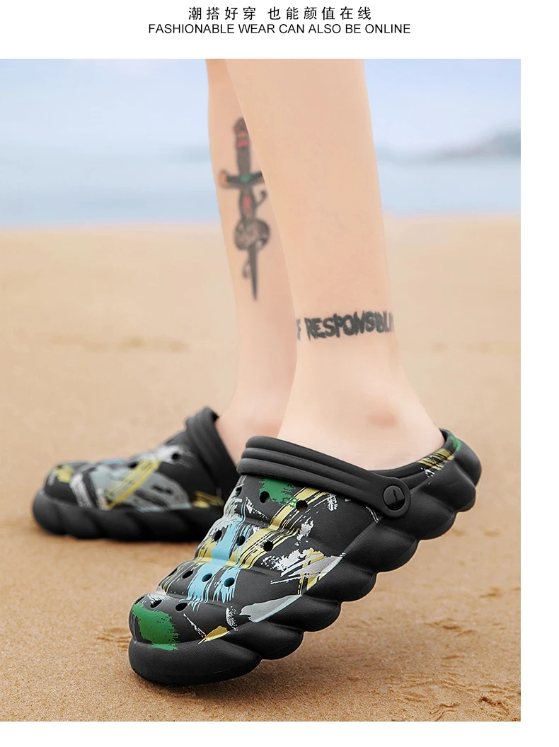 Мужские мюли для сада и пляжа, дышащие Нескользящие тапки, повседне...