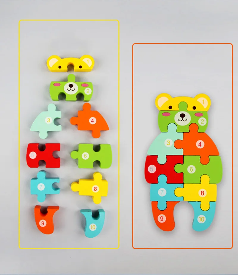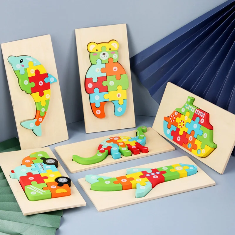 Деревянные пазлы для детей, 3D пазлы с животными для малышей От 3 до 5 лет, Обучающие Развивающие игрушки Монтессори для мальчиков и девочек