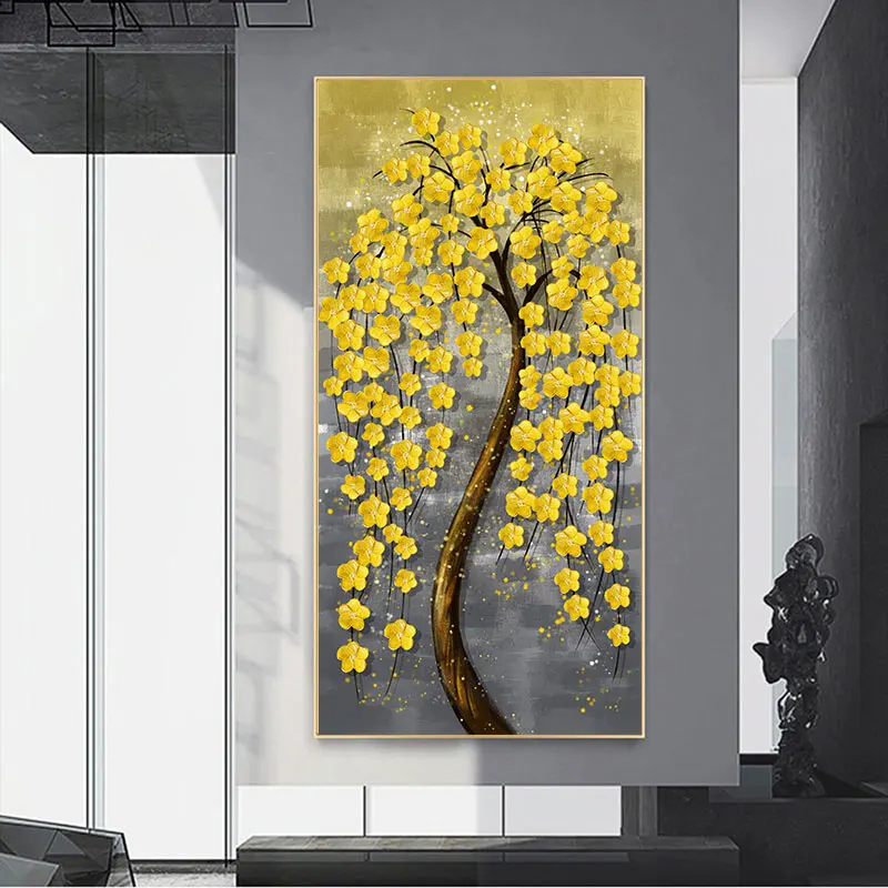 Современная картина маслом, напечатанная на холсте Золотая желтая богатая елка, цветочное растение, фотография стены для гостиной