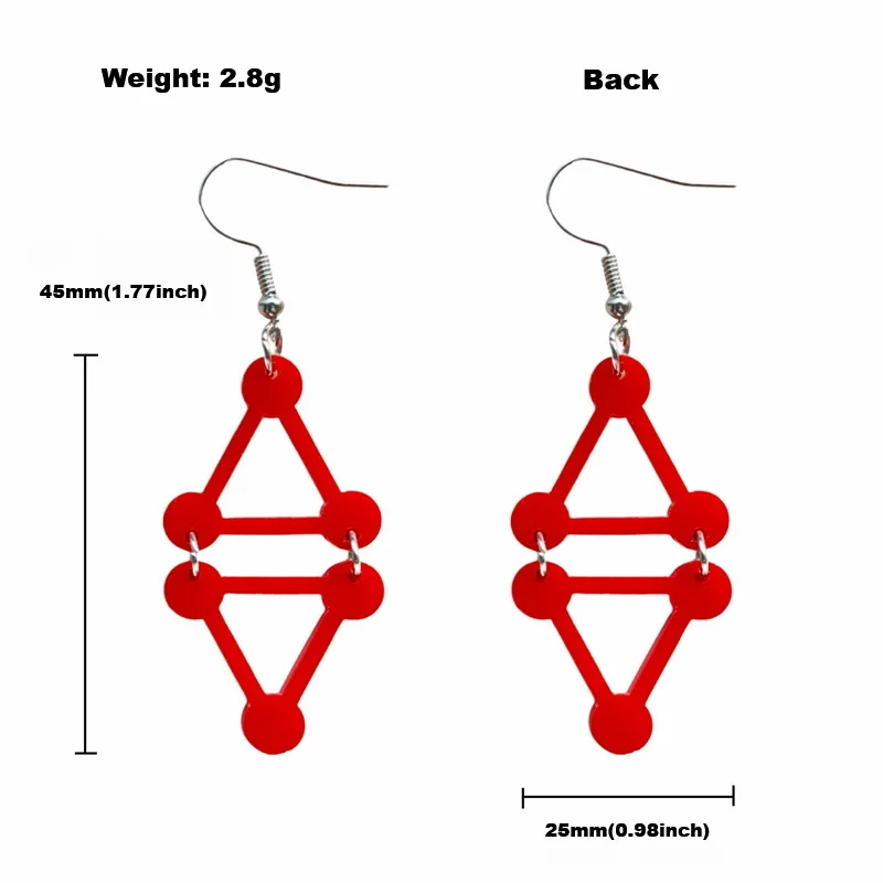 Новые модные геометрические красные треугольные акриловые висячие серьги полые треугольные Висячие ювелирные изделияМатериал: акрилРазмеры: 4,5*2,5 смPS: Мы можем настроить любой дизайн и цвет (для настройки, пожалуйста, свяжитесь с нашей службой поддержки клиентов)