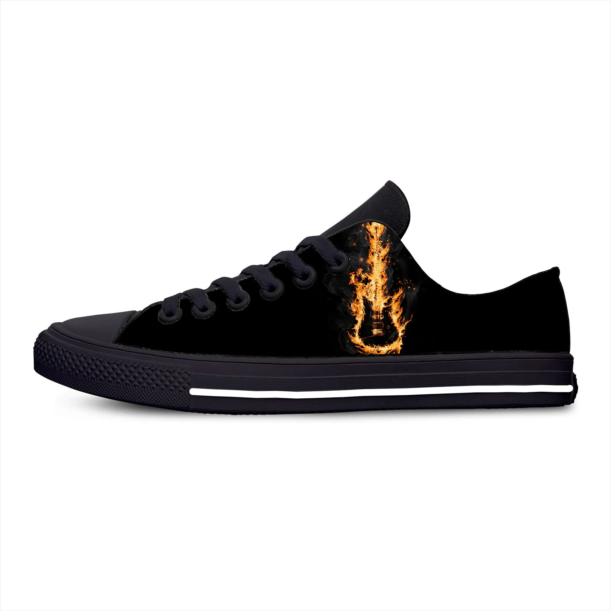 Электрическая гитара музыкальная рок-группа огненное пламя пламени Повседневная Тканевая обувь с низким верхом легкие дышащие кроссовки с 3D принтом для мужчин и женщин