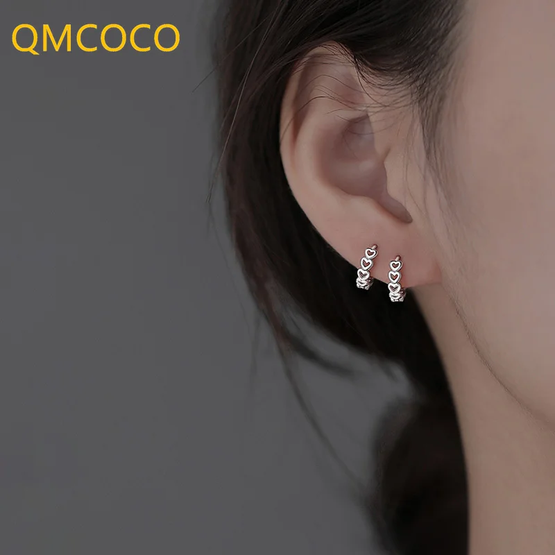 Женские серьги в форме сердца QMCOCO, Серебристые серьги с вырезами, Простые Модные индивидуальные подарочные украшения